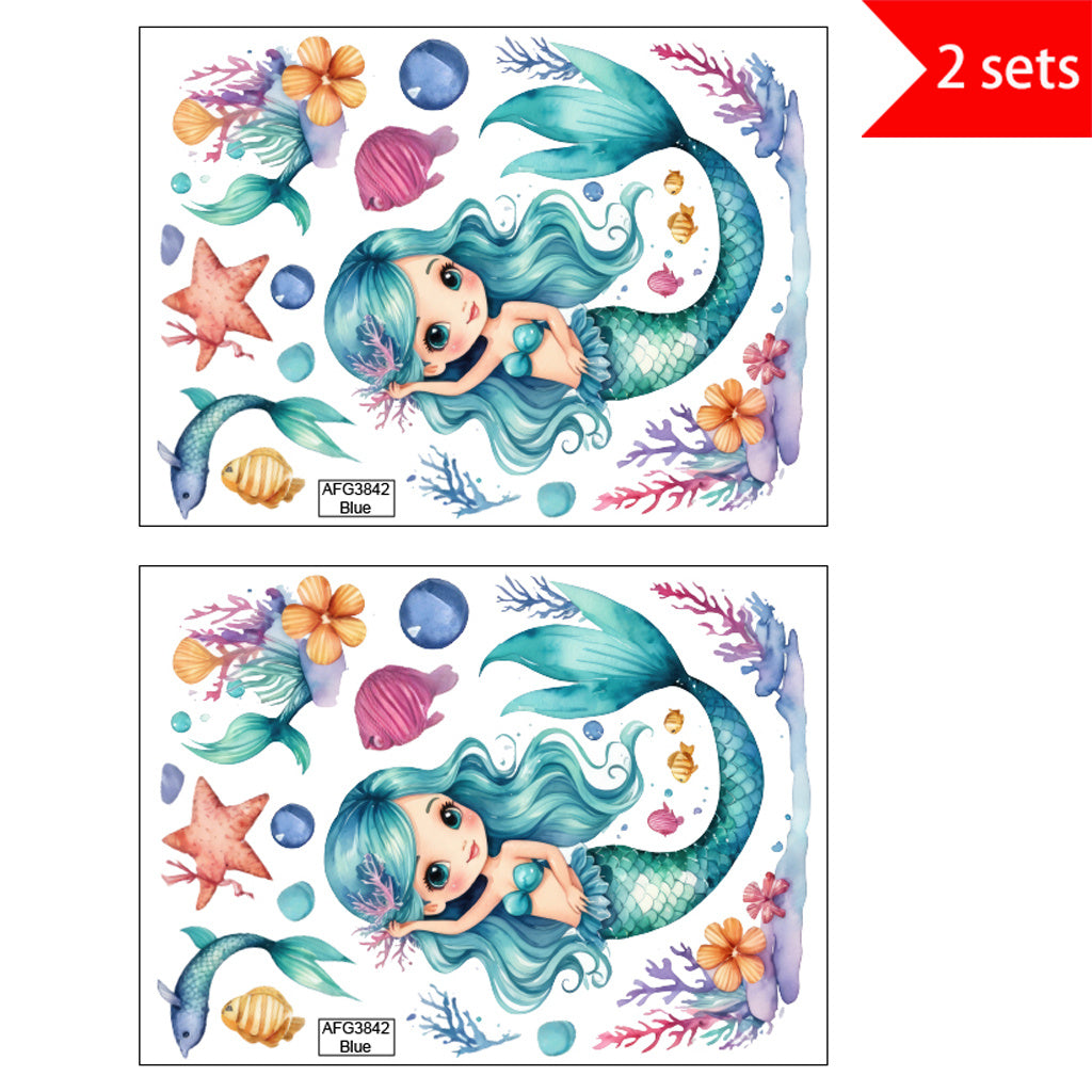 2套 深海夜光墙贴!梦幻美人鱼携小鱼、珊瑚、贝壳荧光绽放,为卧室打造沉浸式海底秘境,黑夜中开启蓝色海洋奇幻之旅,乙烯基可拆卸家居装饰贴纸