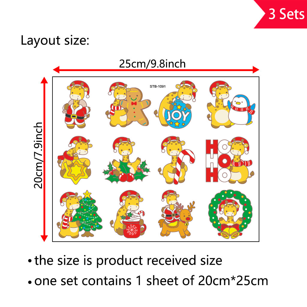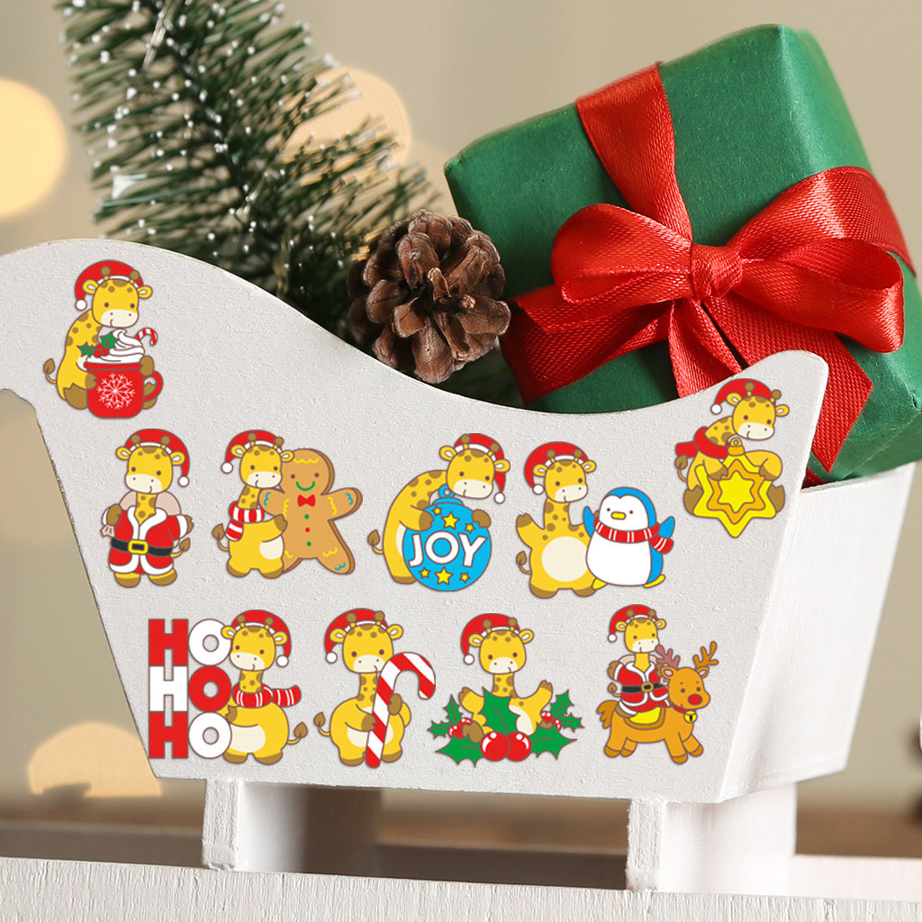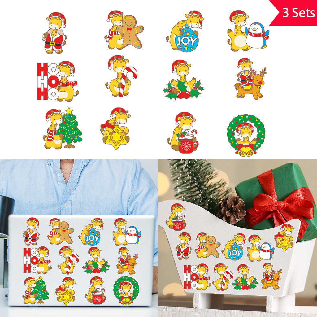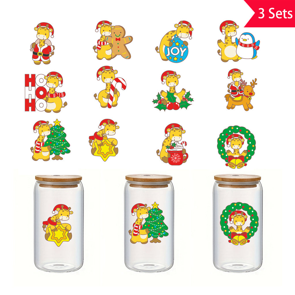 3套 快乐过圣诞可爱卡通长颈鹿转印水晶标贴 适用于水杯 咖啡杯 笔记本装饰等 UV DTF 创意diy贴纸 自粘防水创意diy转印贴纸