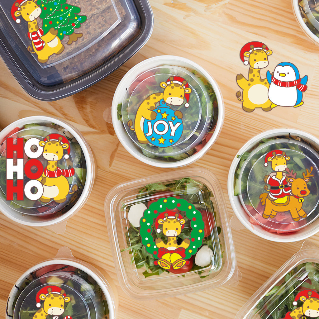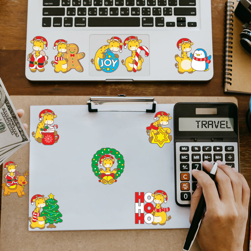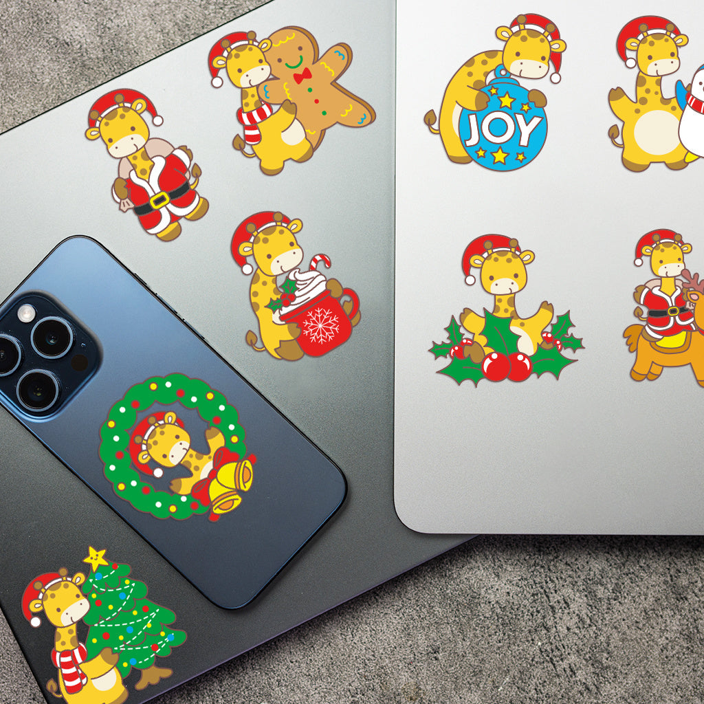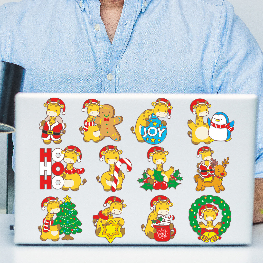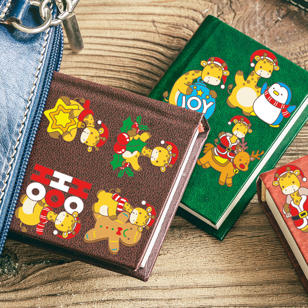 3套 快乐过圣诞可爱卡通长颈鹿转印水晶标贴 适用于水杯 咖啡杯 笔记本装饰等 UV DTF 创意diy贴纸 自粘防水创意diy转印贴纸
