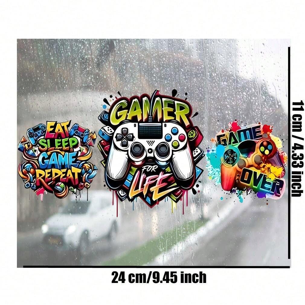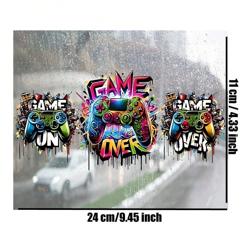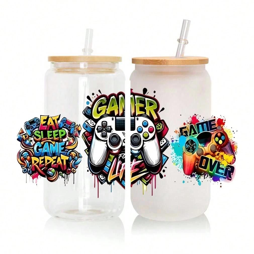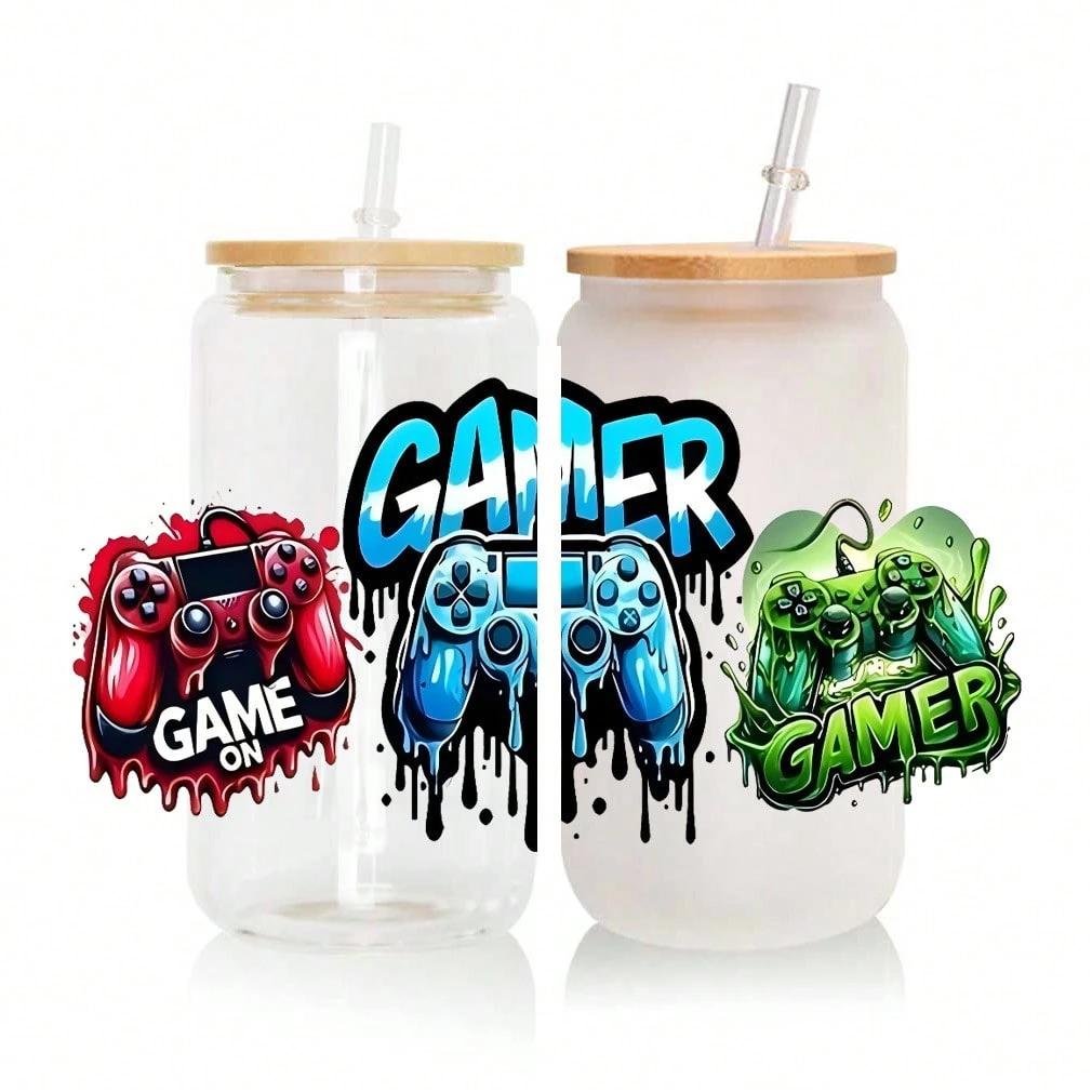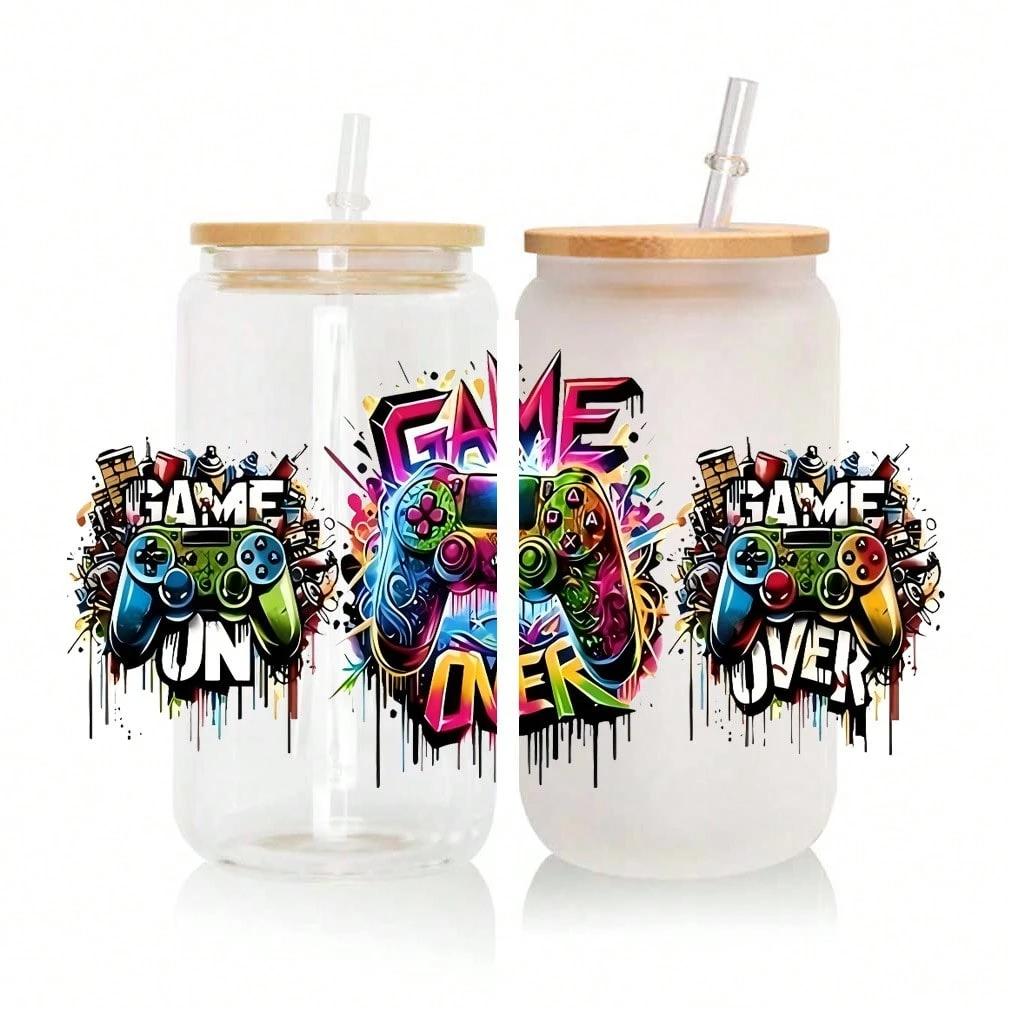 4 Sets Graffiti Gaming Controller UV DTF Transfer Sticker, For 16oz Glass Cup Package, Neon Game DIY Self-Adhesive Cup Wraps For Tumblers & Bottles, 3D Crystal Stickers High-Quality