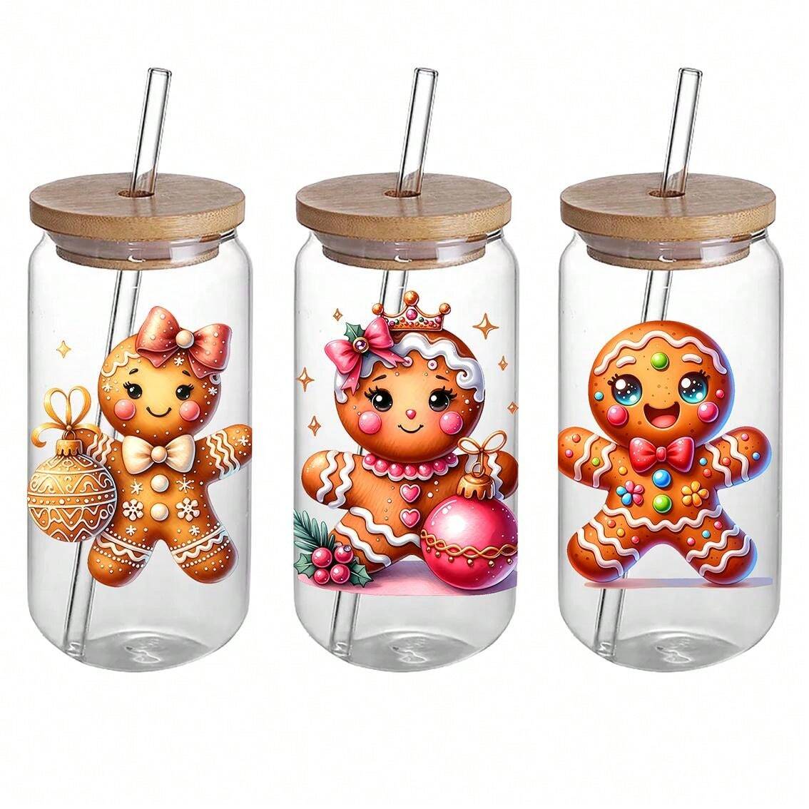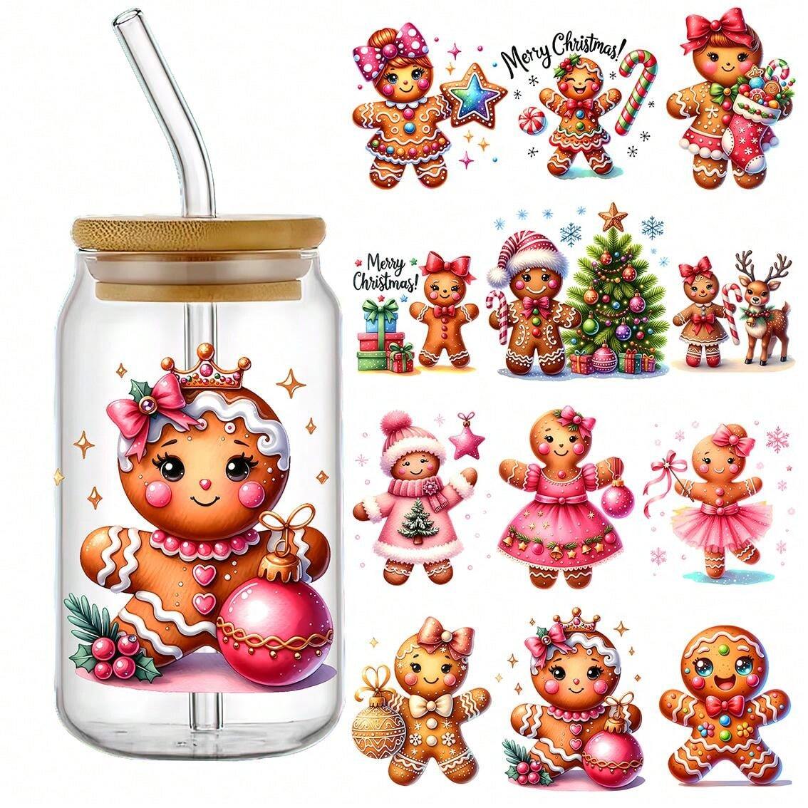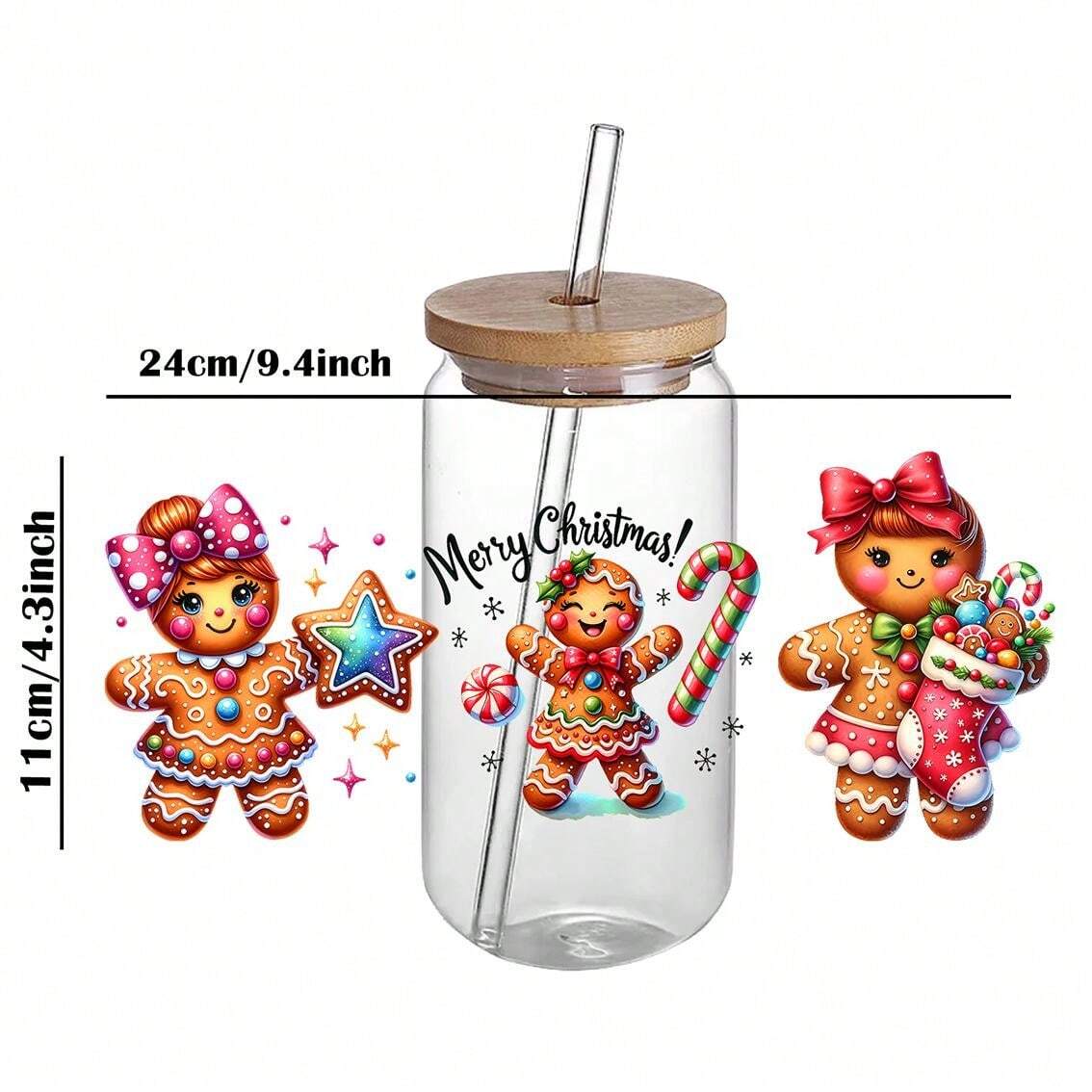 4pcs/1 套 UV 男士姜饼杯套 光照转移自粘式杯套 - 防水防刮,高品质 3D 水晶贴纸,适用于杯子和瓶子,尺寸为 4.3inx 9.4in