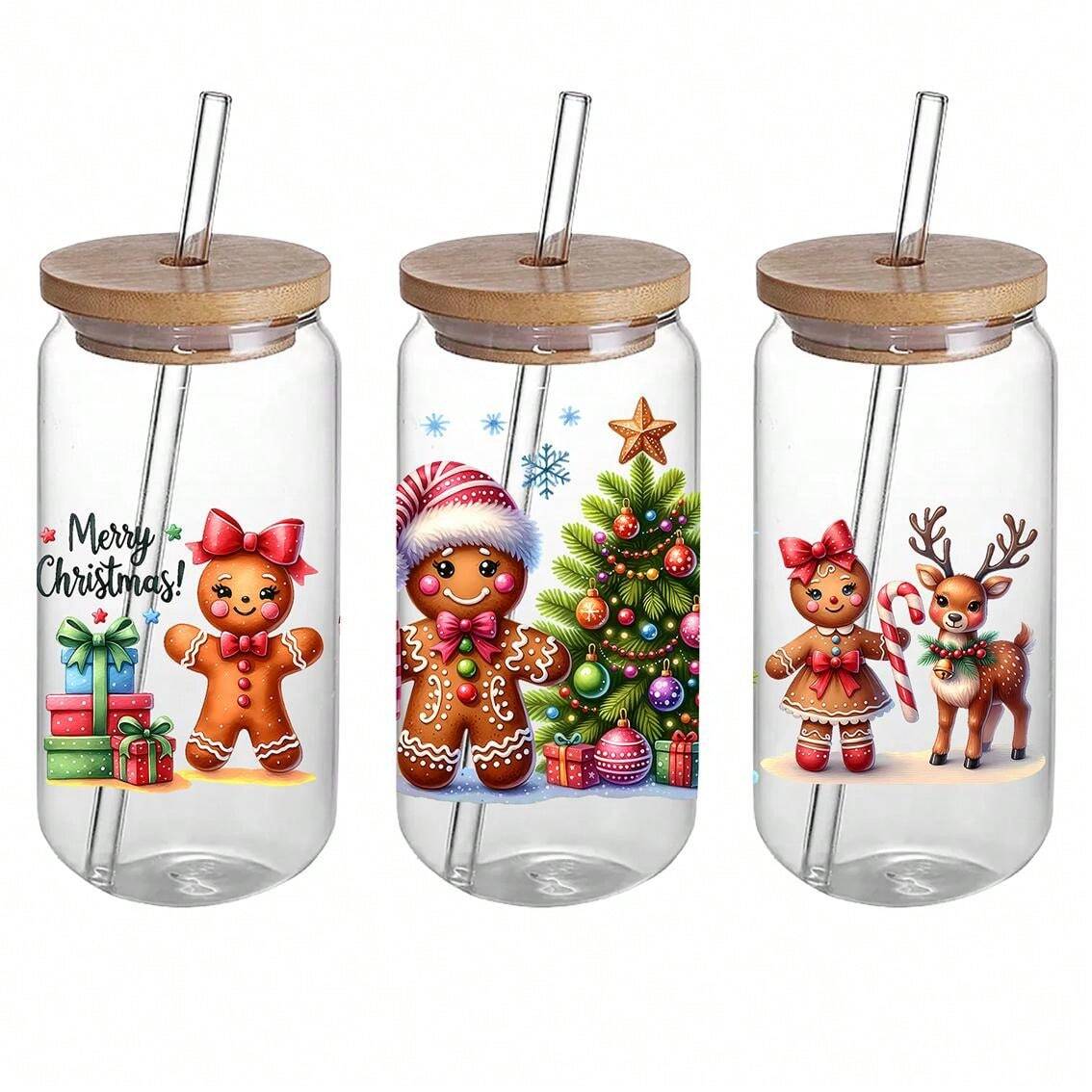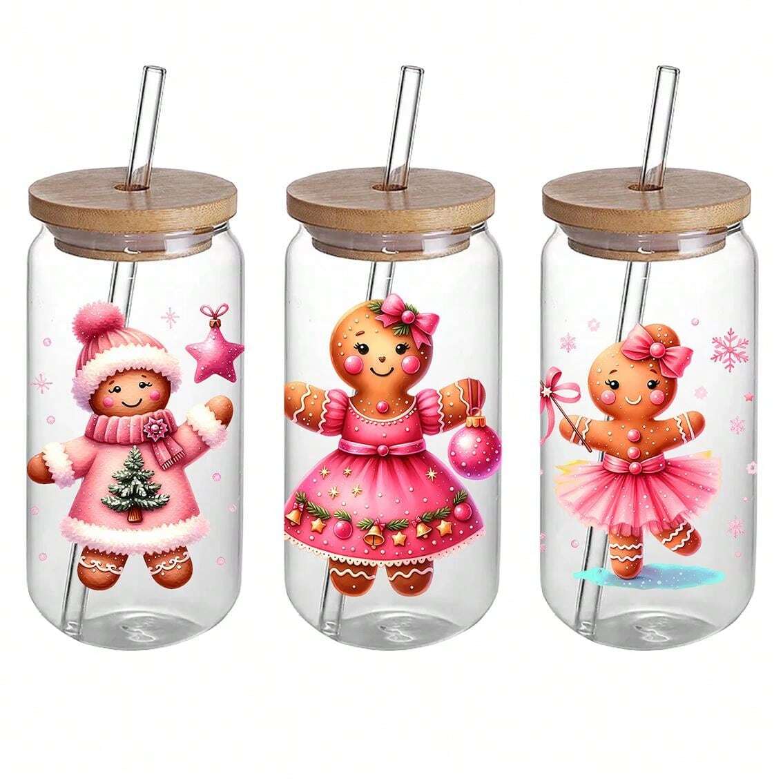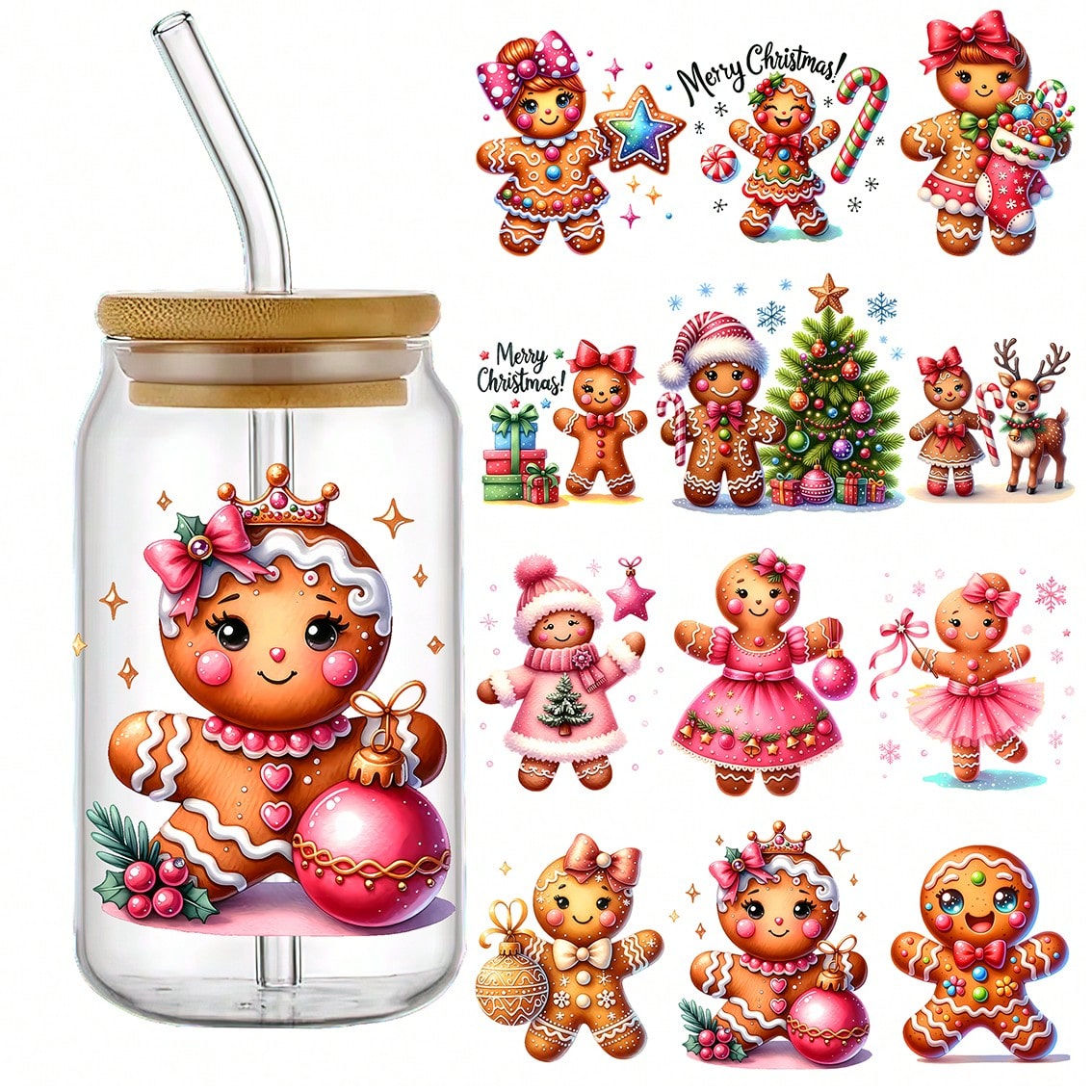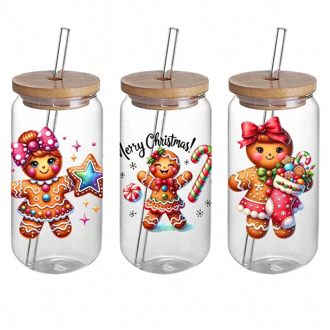 4pcs/1 套 UV 男士姜饼杯套 光照转移自粘式杯套 - 防水防刮,高品质 3D 水晶贴纸,适用于杯子和瓶子,尺寸为 4.3inx 9.4in