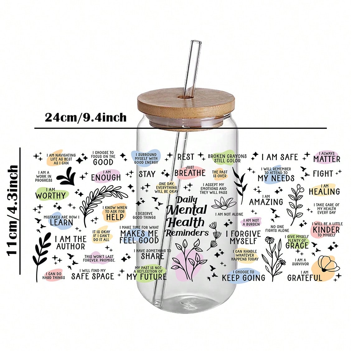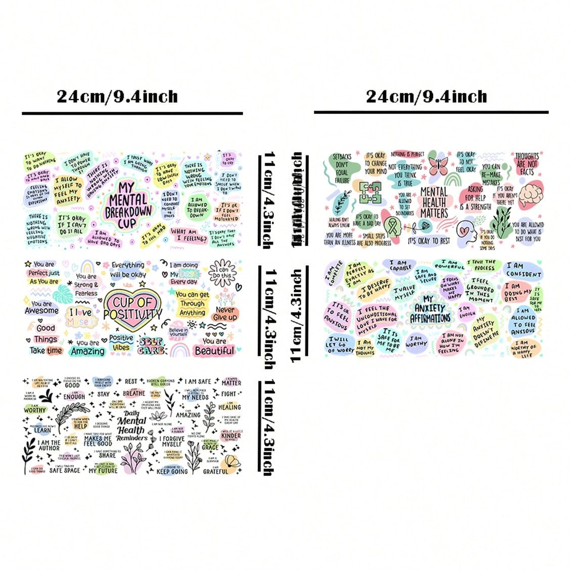 5pcs/Set Mental Health Theme UV DTF Cup Wraps, Waterproof Self-Adhesive Stickers For Mugs, Water Bottles, 16oz Glass Can Wraps, 3D Crystal Label, DIY Crafts