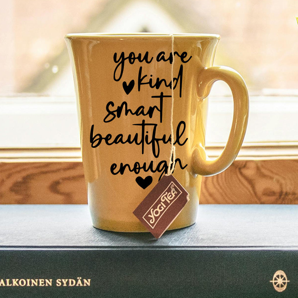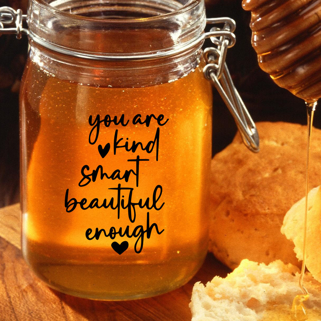 5pcs You are kind smart beautiful enough. Inspirational Quotes, Wishes, and Blessings. Text transfer UV DTF crystal stickers suitable for nursery decoration, cups, computers, home decoration, etc. Self-adhesive waterproof creative stickers.
