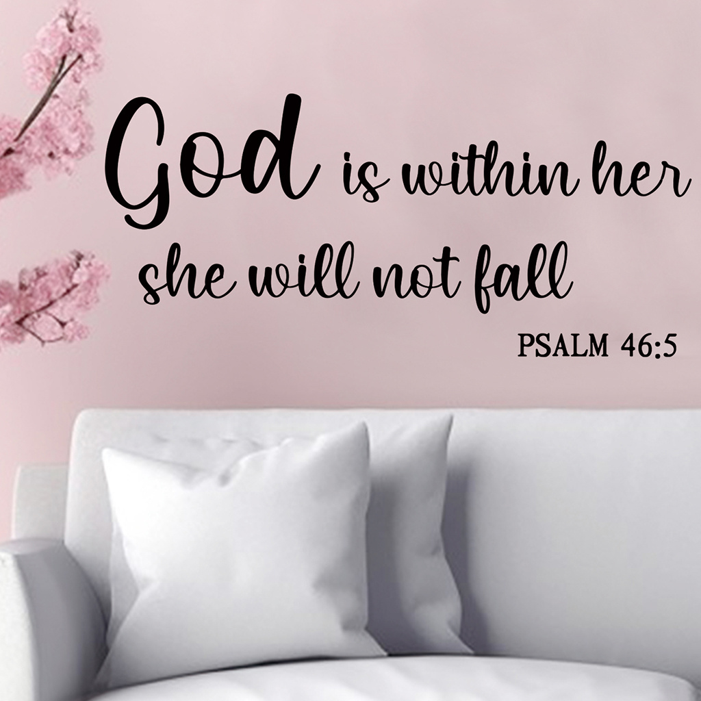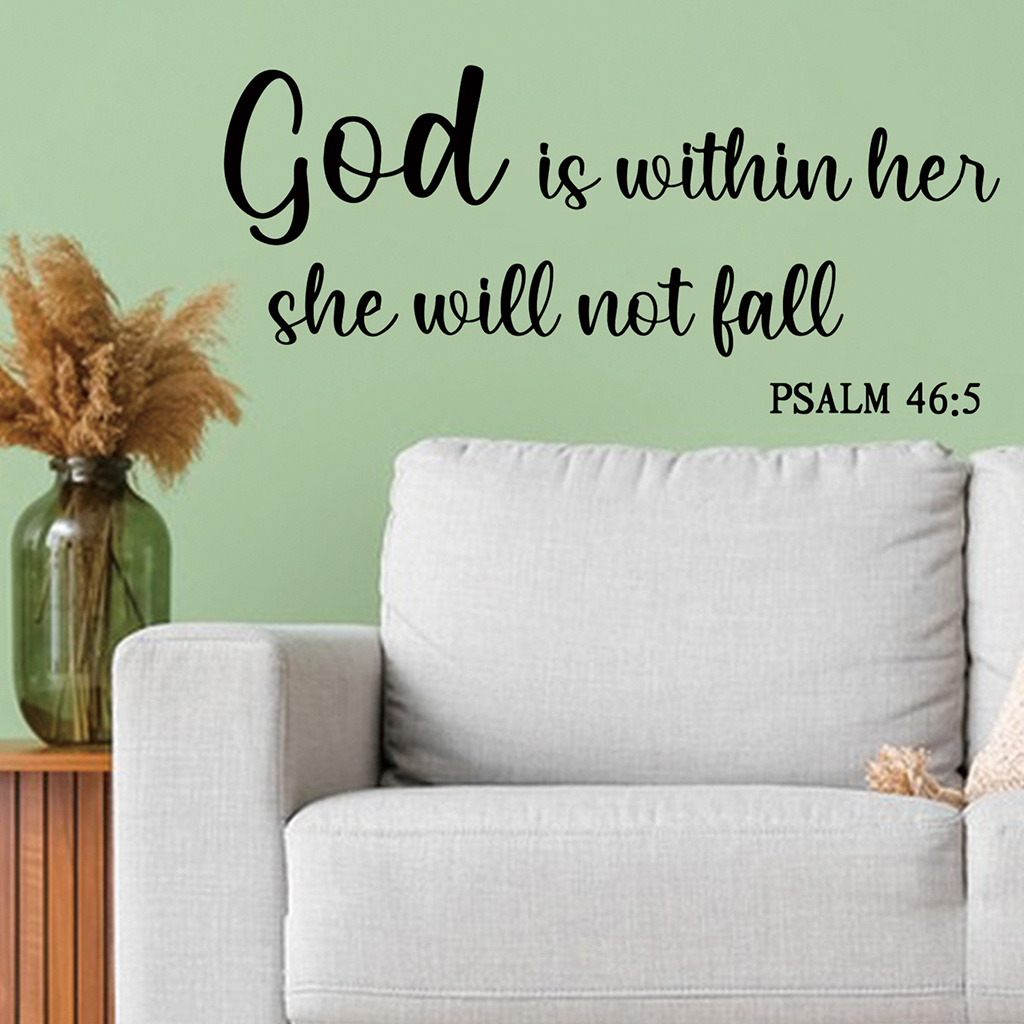 1套 信仰系圣经箴言墙贴,“God is within her” 经文配手写字体,贴于书房、祷告区,为空间添信仰力量与励志格调