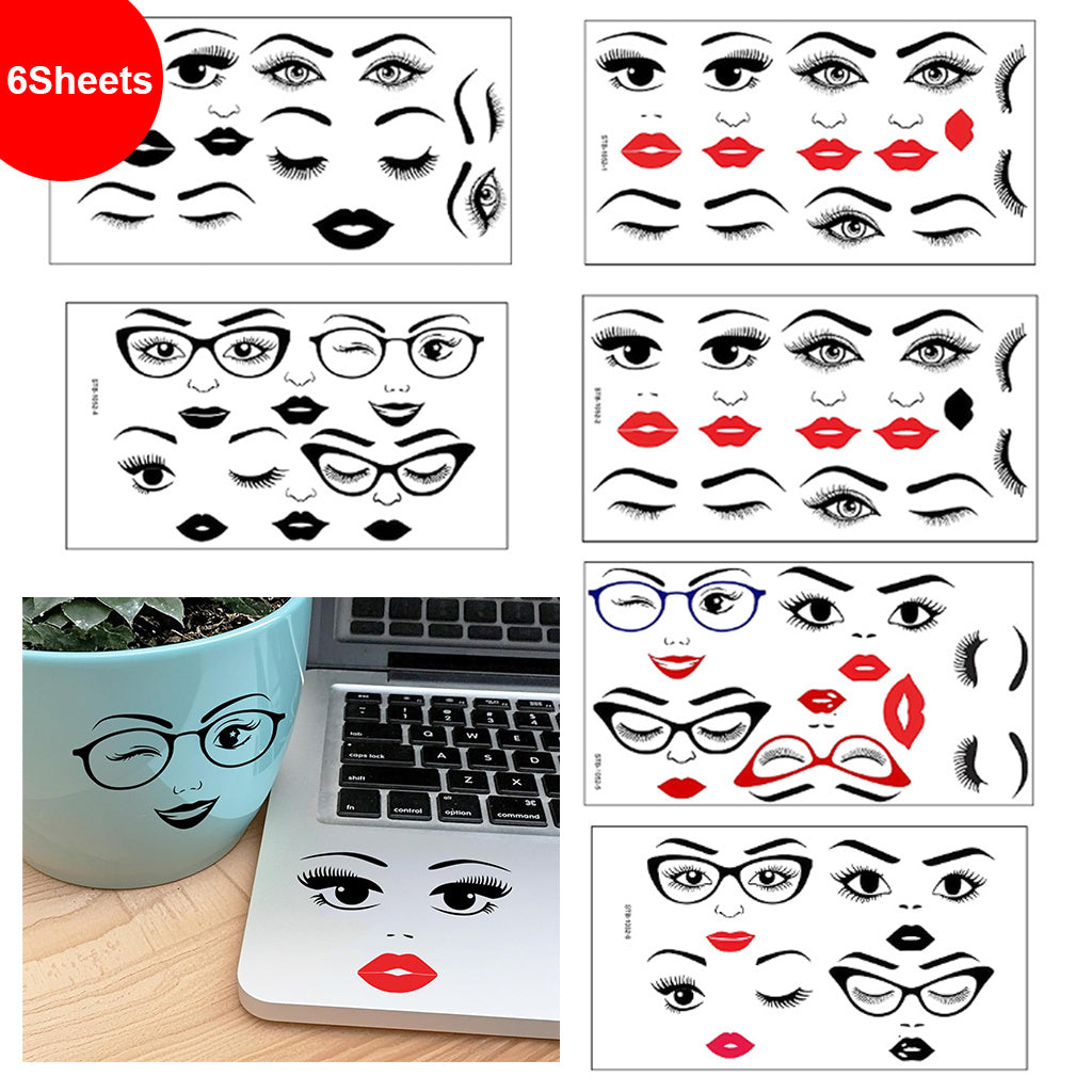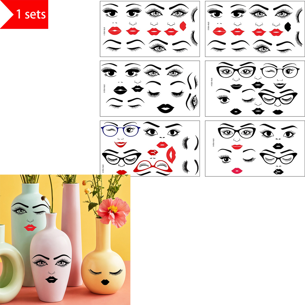 1套 复古红唇眉眼 UV DTF 多用途贴纸包,含多样红唇、眉眼、眼镜图案,UV DTF 材质,适用于剪贴簿、杯贴等,为手账、水杯增添复古时尚艺术感。