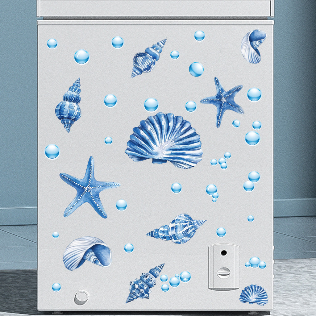 1套 夜光墙贴:海洋风贝壳海星荧光贴饰,蓝色系海螺气泡组合,为卫浴空间注入深海浪漫,夜间发光营造梦幻海底秘境,让如厕时刻也如漫游海洋童话
