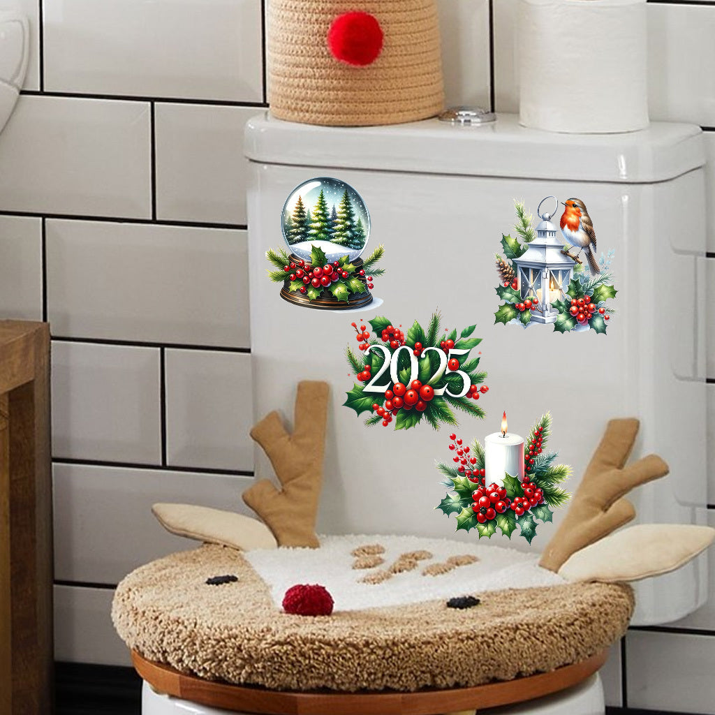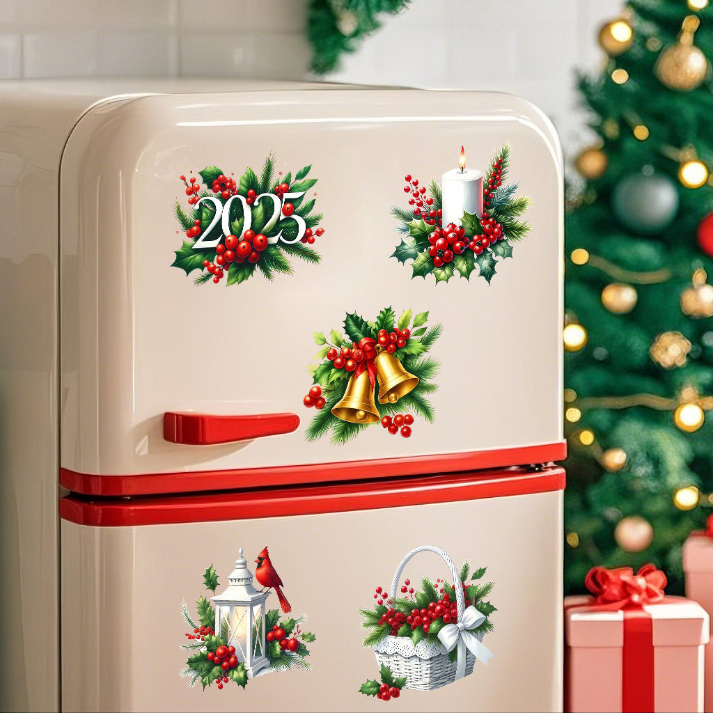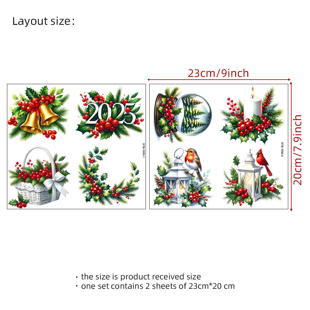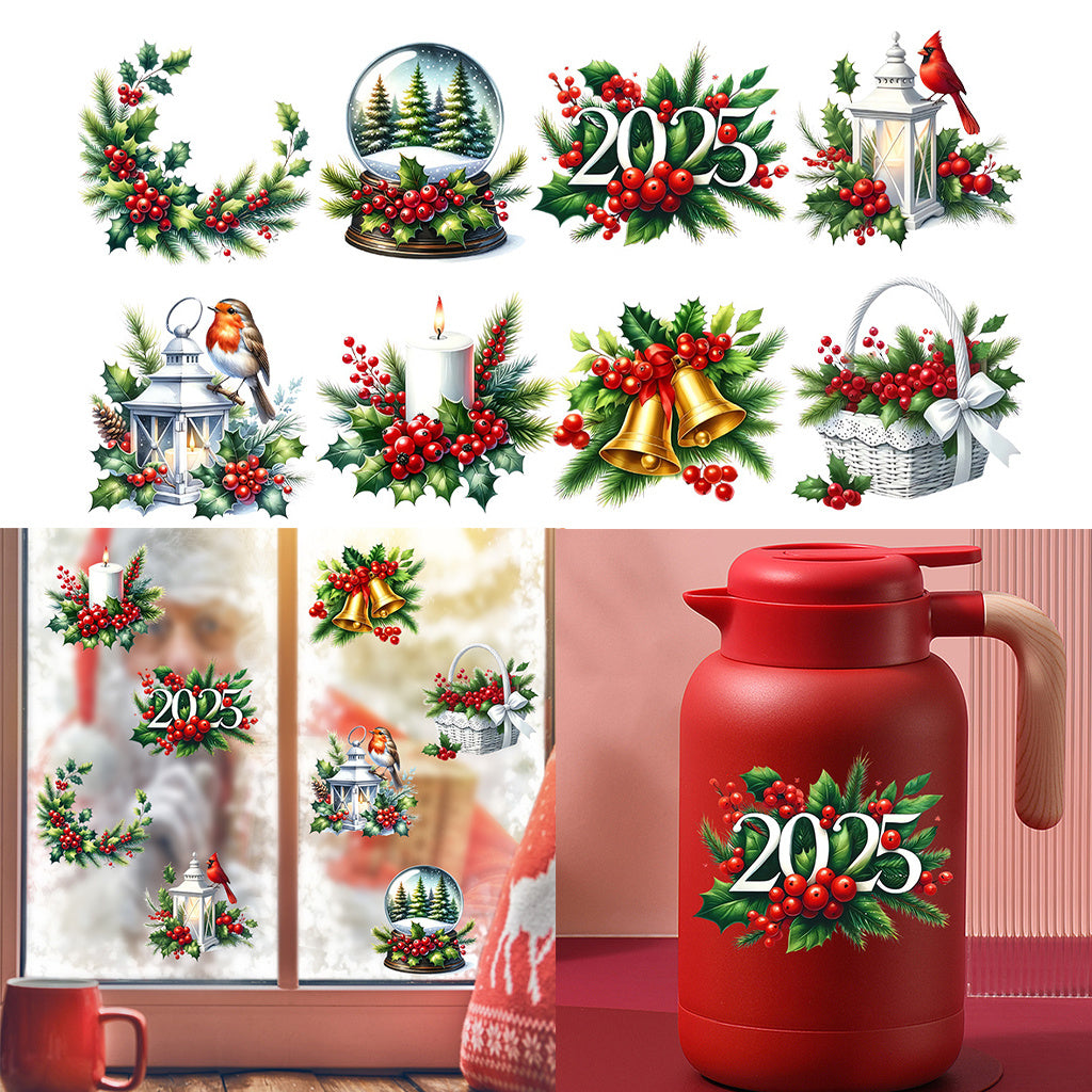 1套 2025圣诞节花卉水果铃铛转印水晶标贴纸 适用于水杯 咖啡杯 笔记本装饰等 自粘防水DIY贴纸 UV DTF 转印贴纸办公室和家用