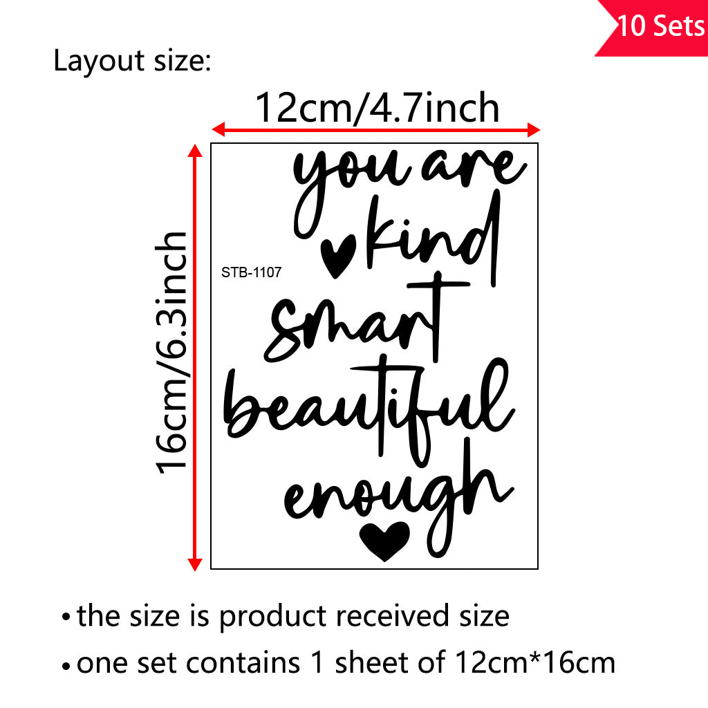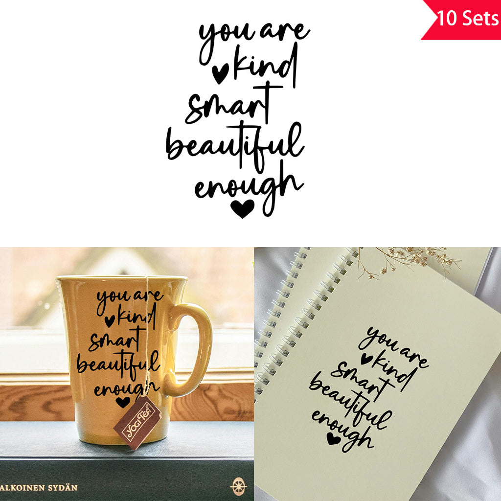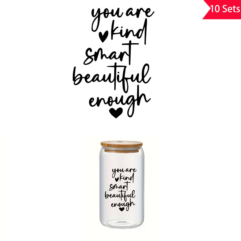 10套 暖心励志你足够善良、聪明、美丽。励志名言、祝福与祈愿。适用于杯子、电脑、家居装饰等的UV DTF水晶贴纸。自粘防水创意贴纸。