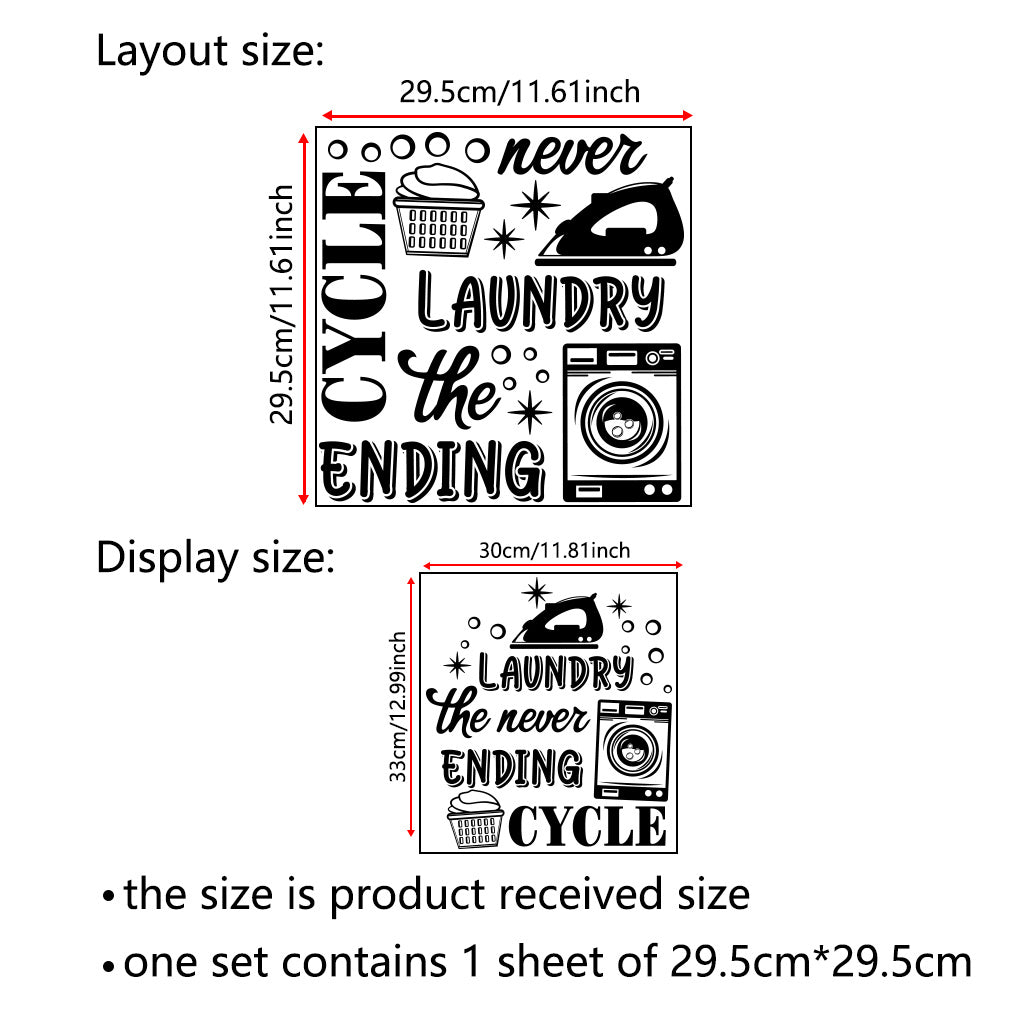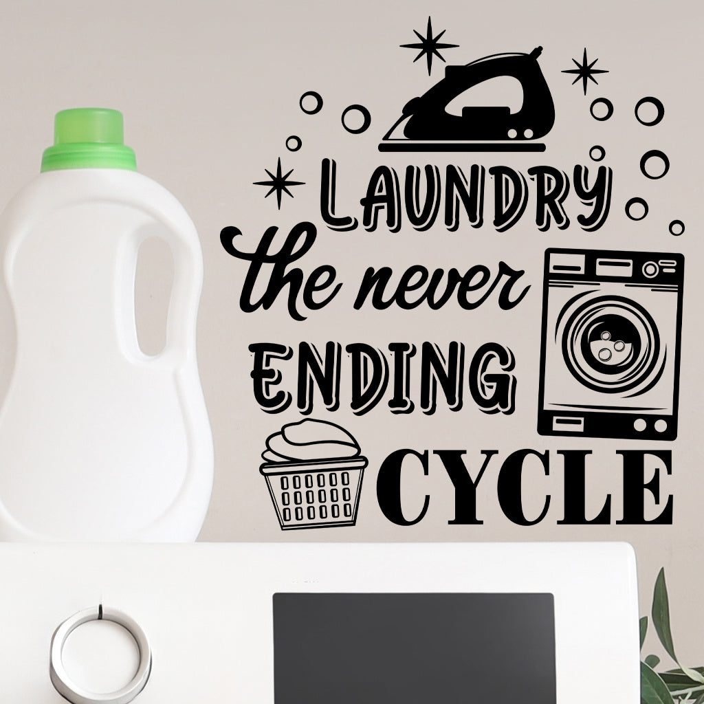 1pc Humorous laundry quote sticker 'Laundry: The Endless Cycle, ' featuring retro appliance designs, perfect for laundry room decor, home organization accents, and adding a touch of playful aesthetics.