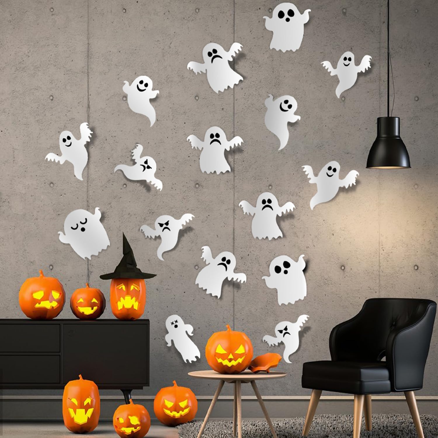 Spooky Halloween Ghost Wall Decor White Ghost Wall Decals 3D Gothic Ghost Stickers for Home Wall Decor Halloween Party Decorations