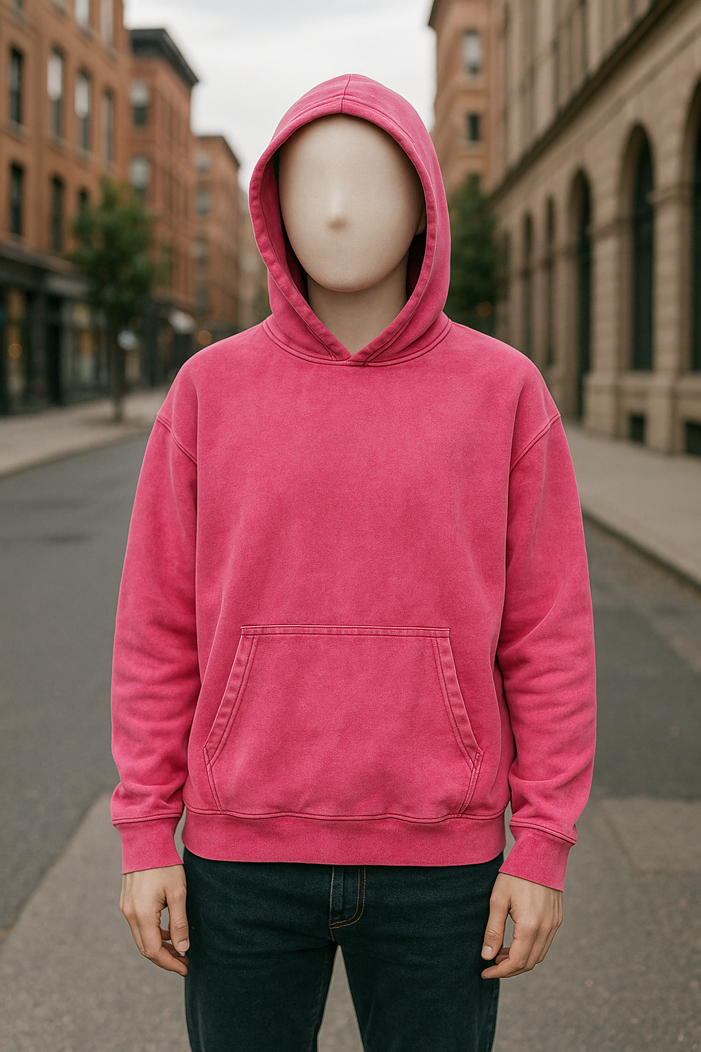 Sudadera con capucha lavada en rojo rosa