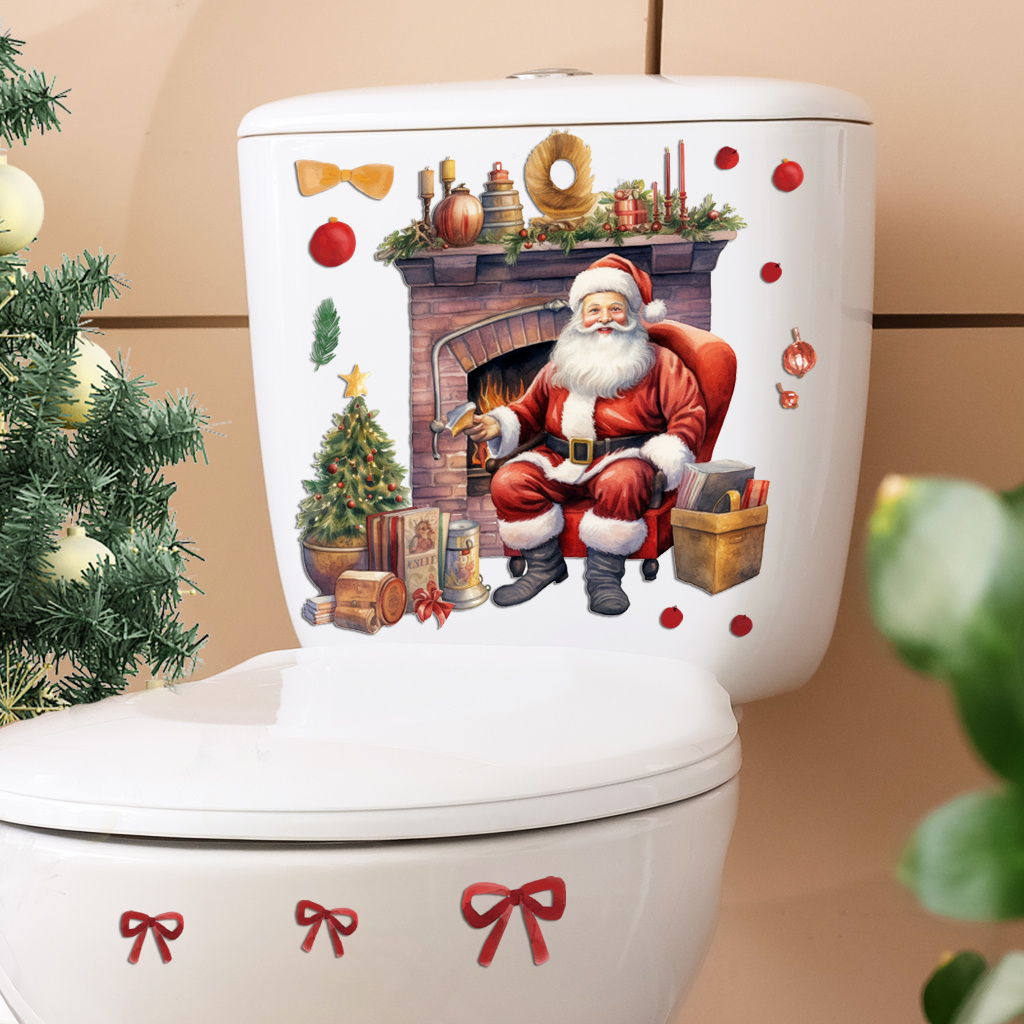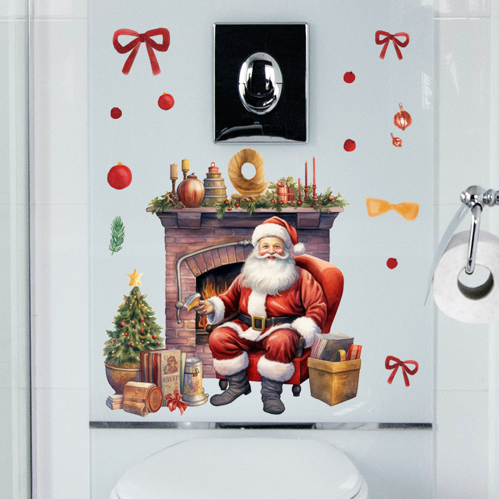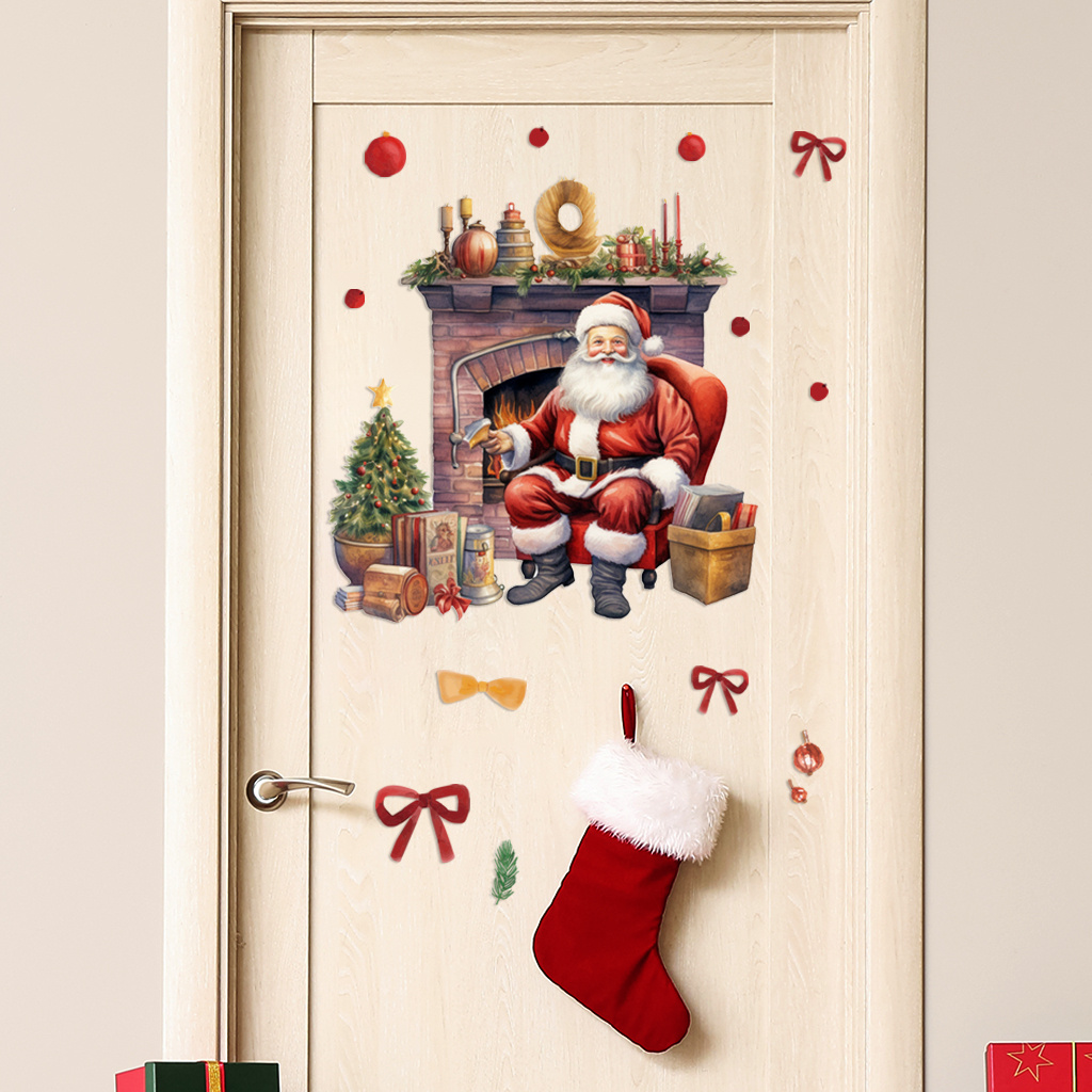 1套 圣诞温馨壁炉圣诞老人墙贴,水彩风壁炉旁圣诞老人配圣诞元素,氛围治愈,贴于客厅、卧室墙面,为圣诞添家的温暖感,自粘易贴可点缀空间。
