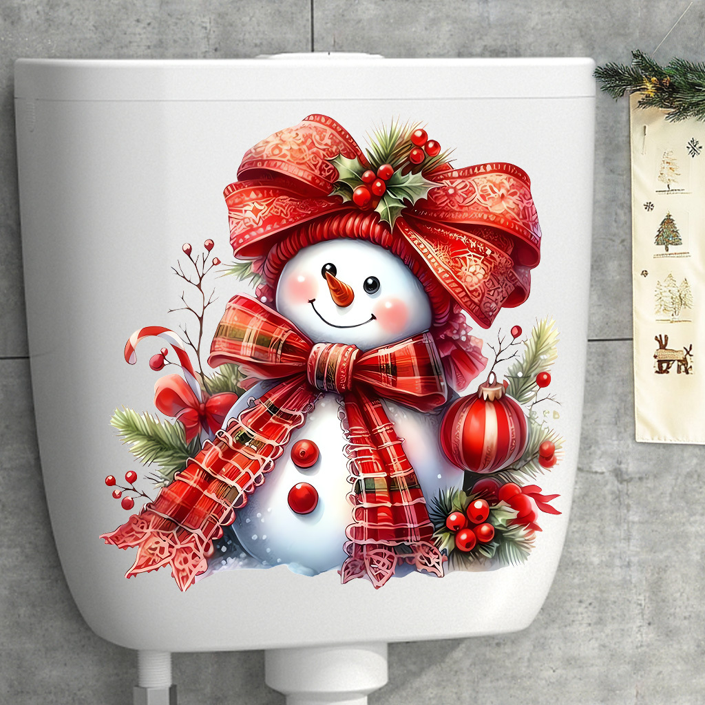1套 复古圣诞雪人马桶贴,红格纹雪人设计,风格经典,适合喜爱传统圣诞风的家庭卫浴装饰,轻松打造节日氛围感,粘贴便捷易清洁。