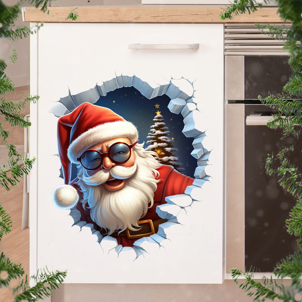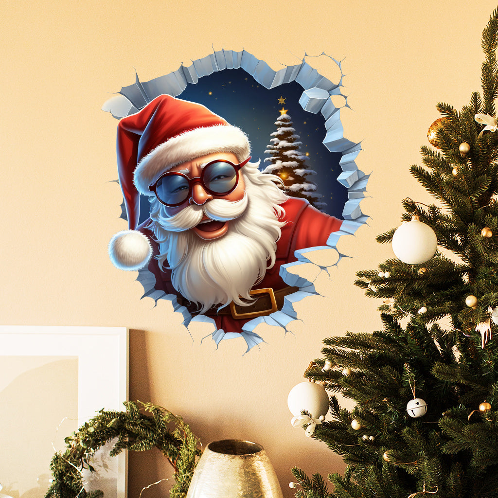 1套 破墙圣诞老人墙贴,潮酷墨镜圣诞老人破墙设计,圣诞氛围活泼,贴于客厅、卧室,瞬间打造趣味互动感,自粘易贴似实景破墙。
