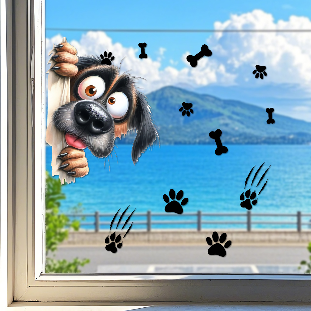 1套 萌趣偷窥狗爪印墙贴,搞怪狗狗扒墙偷看,搭配爪印骨头元素,贴于卧室、宠物区,为空间添可爱萌宠氛围。