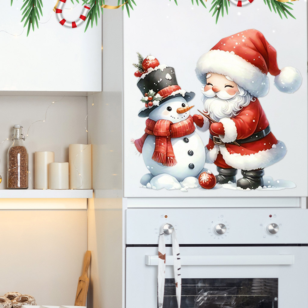 1套 萌趣圣诞互动墙贴,Q 版圣诞老人堆雪人造型,童趣温馨,贴于卧室、客厅墙面,为圣诞添治愈氛围,自粘易贴可灵活点缀空间。