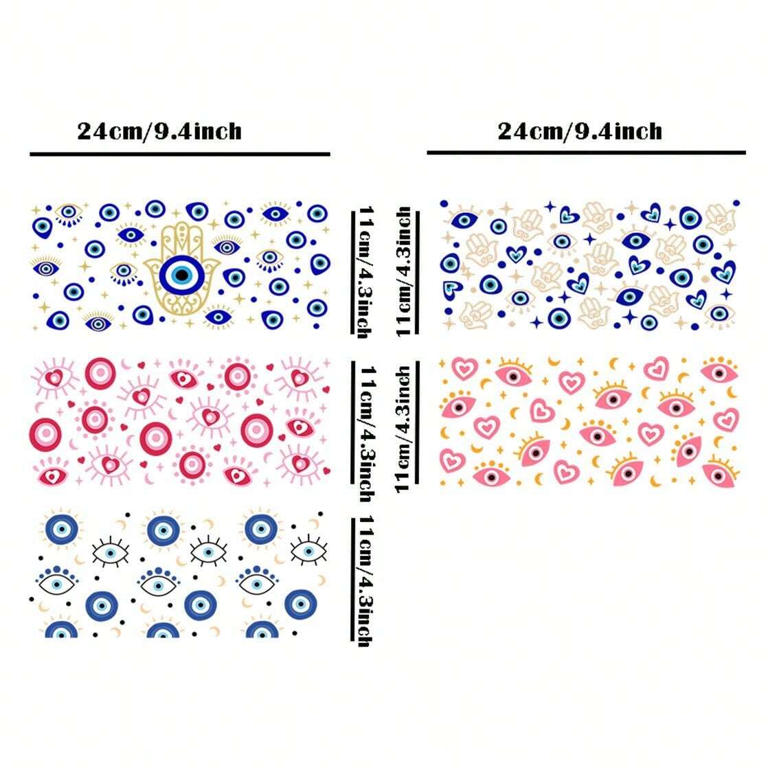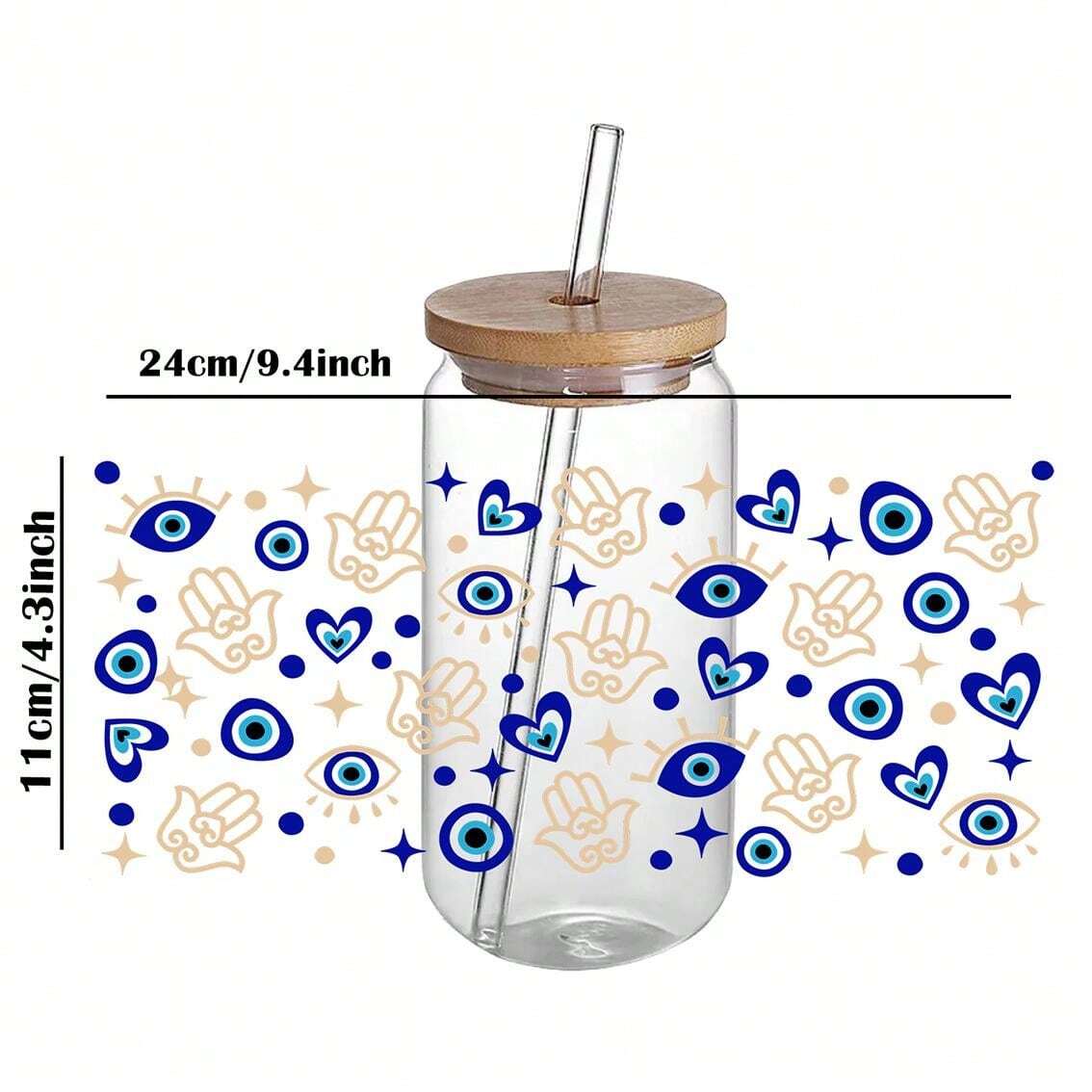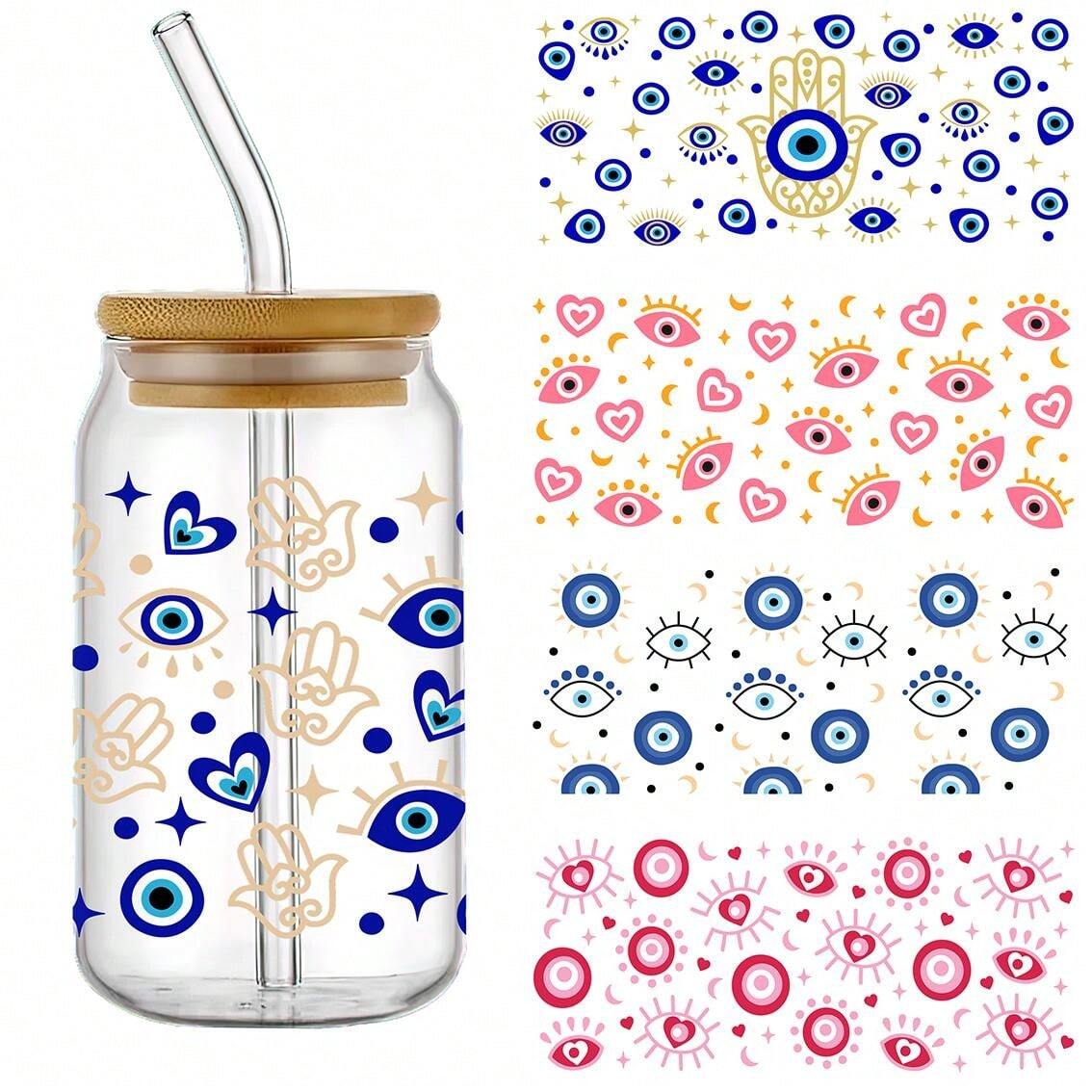 1 set of 5pcs Lucky Pink Blue Eye UV DTF Transfer Printing Waterproof Self-Adhesive Stickers For Mug Water Bottle Cup, DTF Transfer Sticker For 16 OZ Glass Can Wrap, 3d Crystal Label Waterproof And Scratch Resistant, DIY Wrap Transfer Sticker Glass Cup St