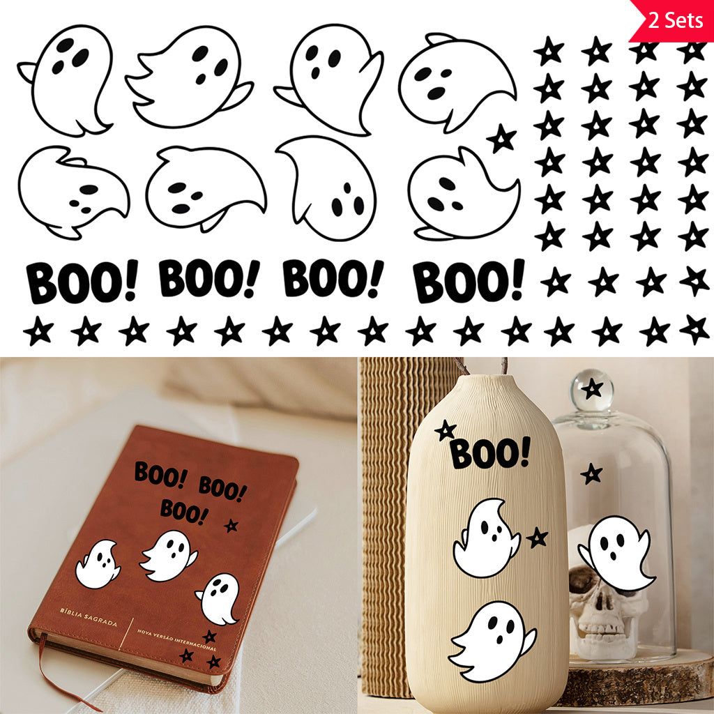 2套 万圣节 可爱幽灵转印水晶贴纸 适用于水杯 玻璃 金属 笔记本等装饰水晶贴纸 自粘可拆卸防水水晶贴纸 增添生活趣味性与文化艺术性 UV DTF 转印贴纸办公室和家用