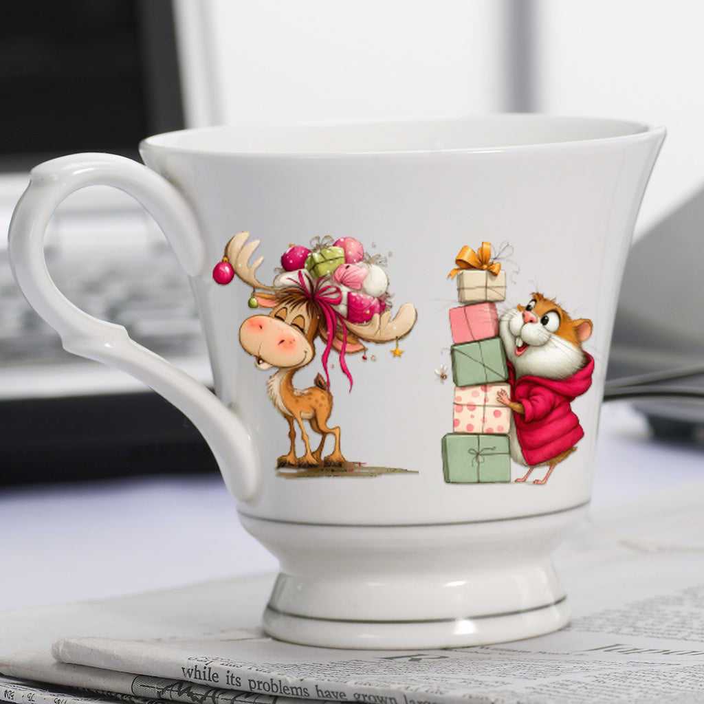 2pcs Cute cartoon Christmas animal UV DTF Crystal label transfer sticker series - Charming squirrel, badger, alpaca and raccoon designs, perfectly adding a festive and artistic atmosphere to glass jars and adult holiday home decoration Spaces. Self-adhesi