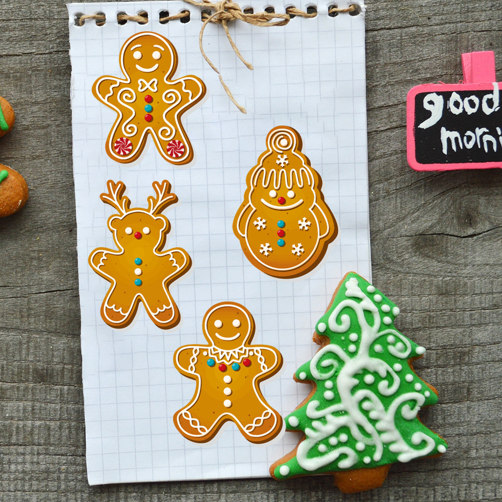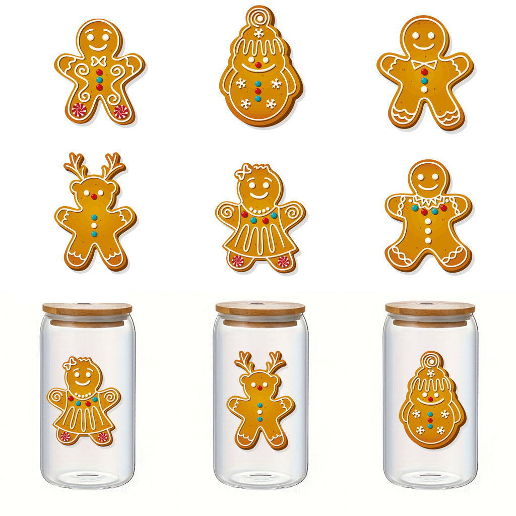 3套 圣诞节可爱姜饼人转移水晶标贴纸 适用于男孩女孩文具 水杯 笔记本装饰 咖啡杯装饰 自粘防水创意DIY UV DTF贴纸 增添节日欢乐氛围与生活趣味性
