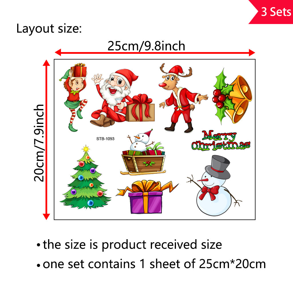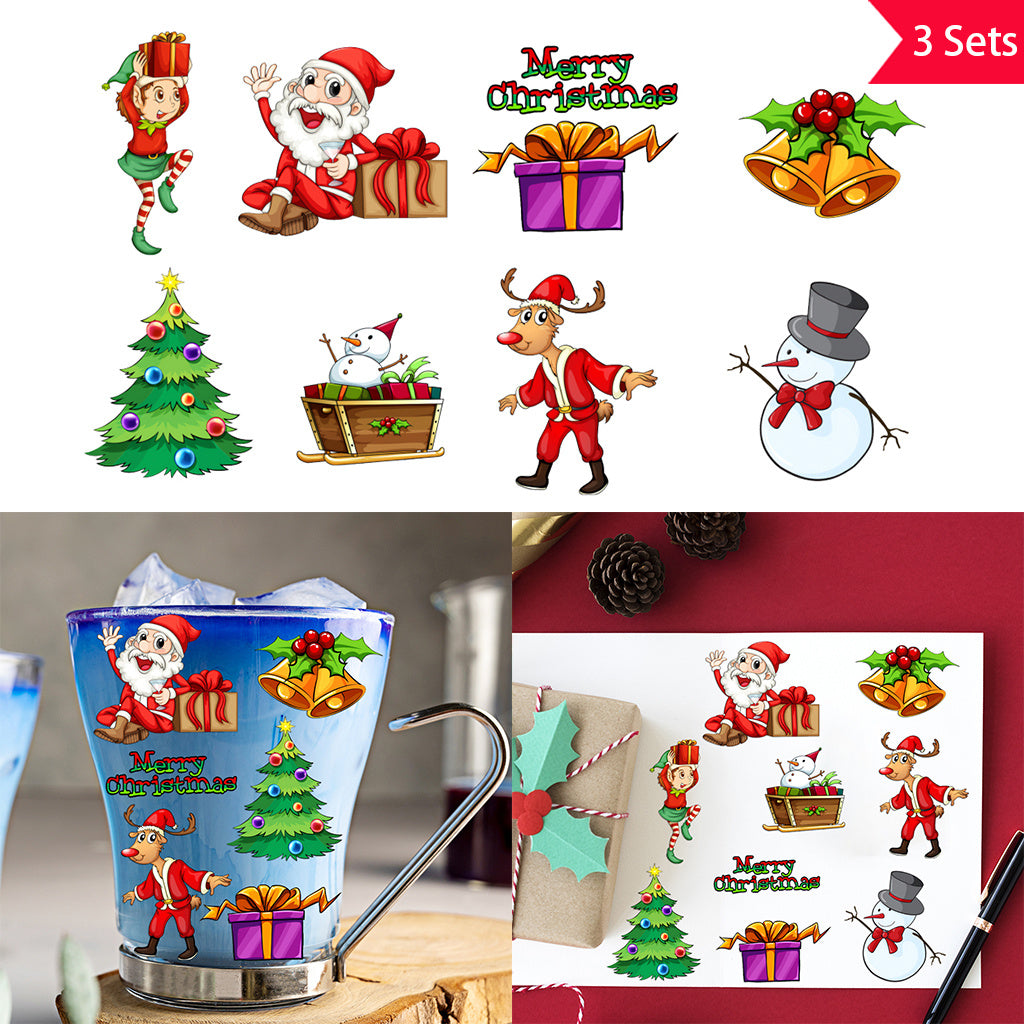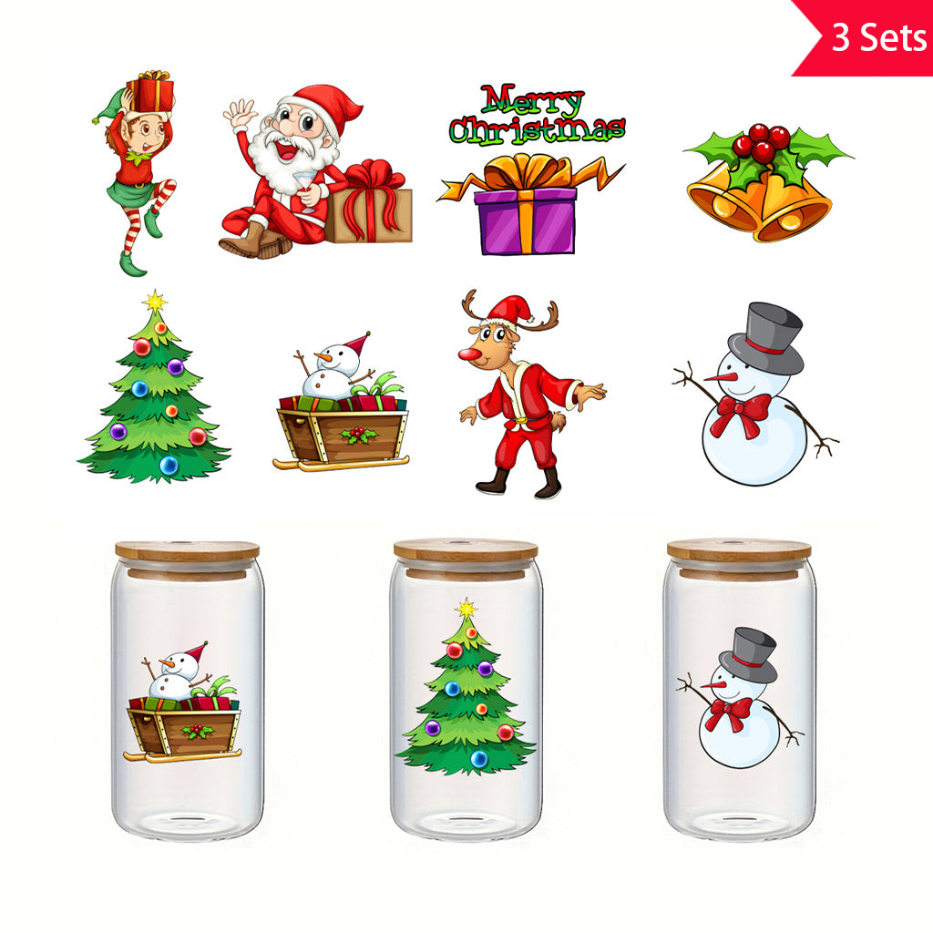 3套 圣诞节狂欢转印水晶标贴纸 UV DTF 转印贴纸 办公室和家用 玻璃杯 咖啡杯 DIY 包裹转移 3D 创意贴纸 自粘防水乙烯基材质