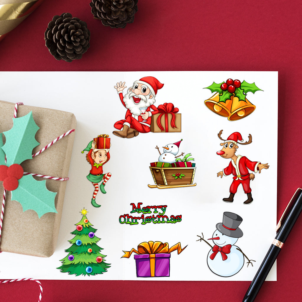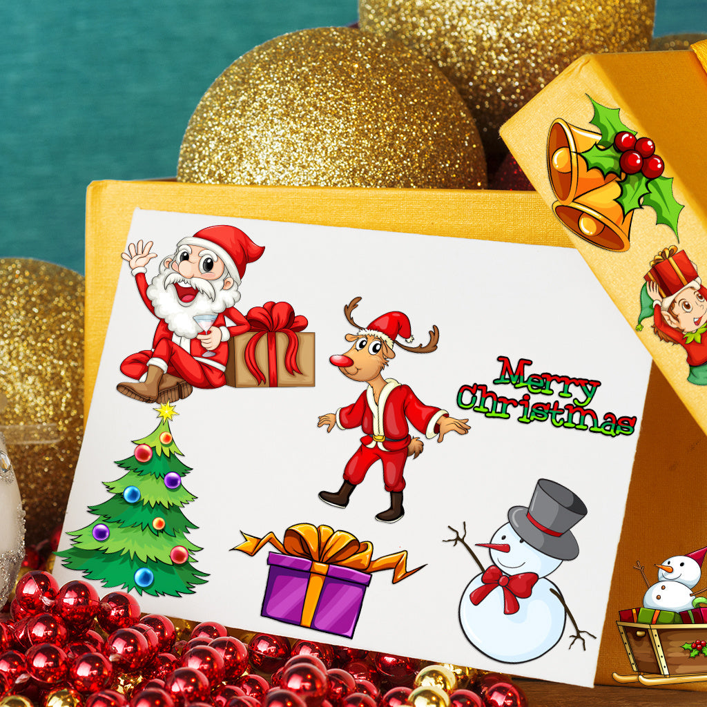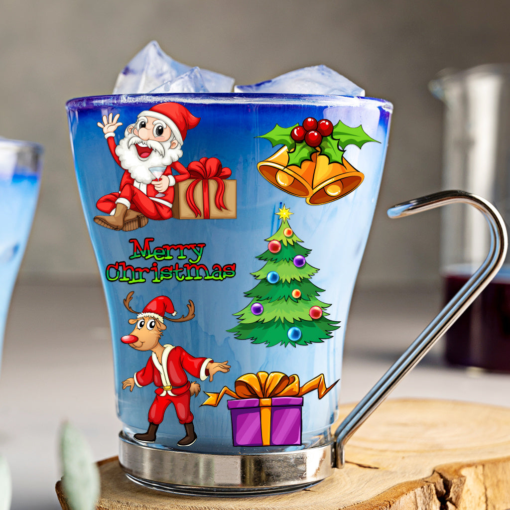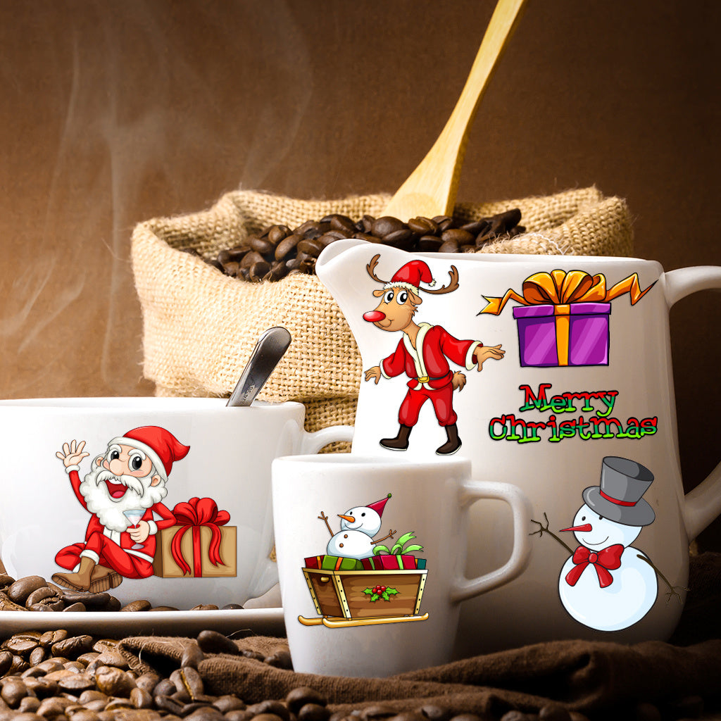 3套 圣诞节狂欢转印水晶标贴纸 UV DTF 转印贴纸 办公室和家用 玻璃杯 咖啡杯 DIY 包裹转移 3D 创意贴纸 自粘防水乙烯基材质