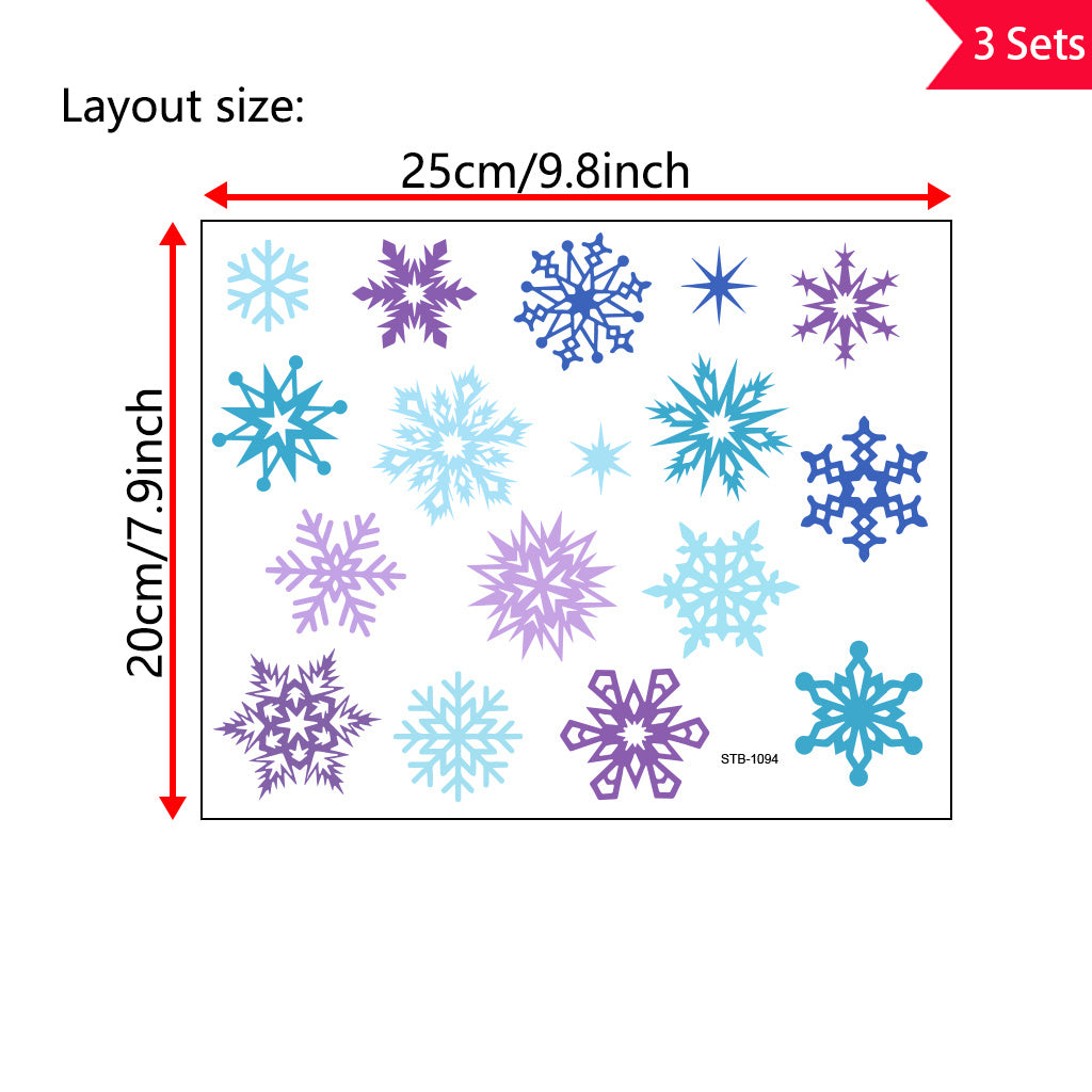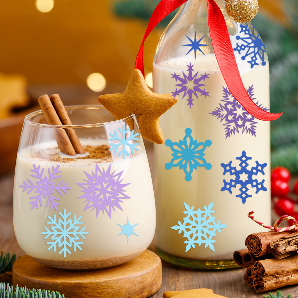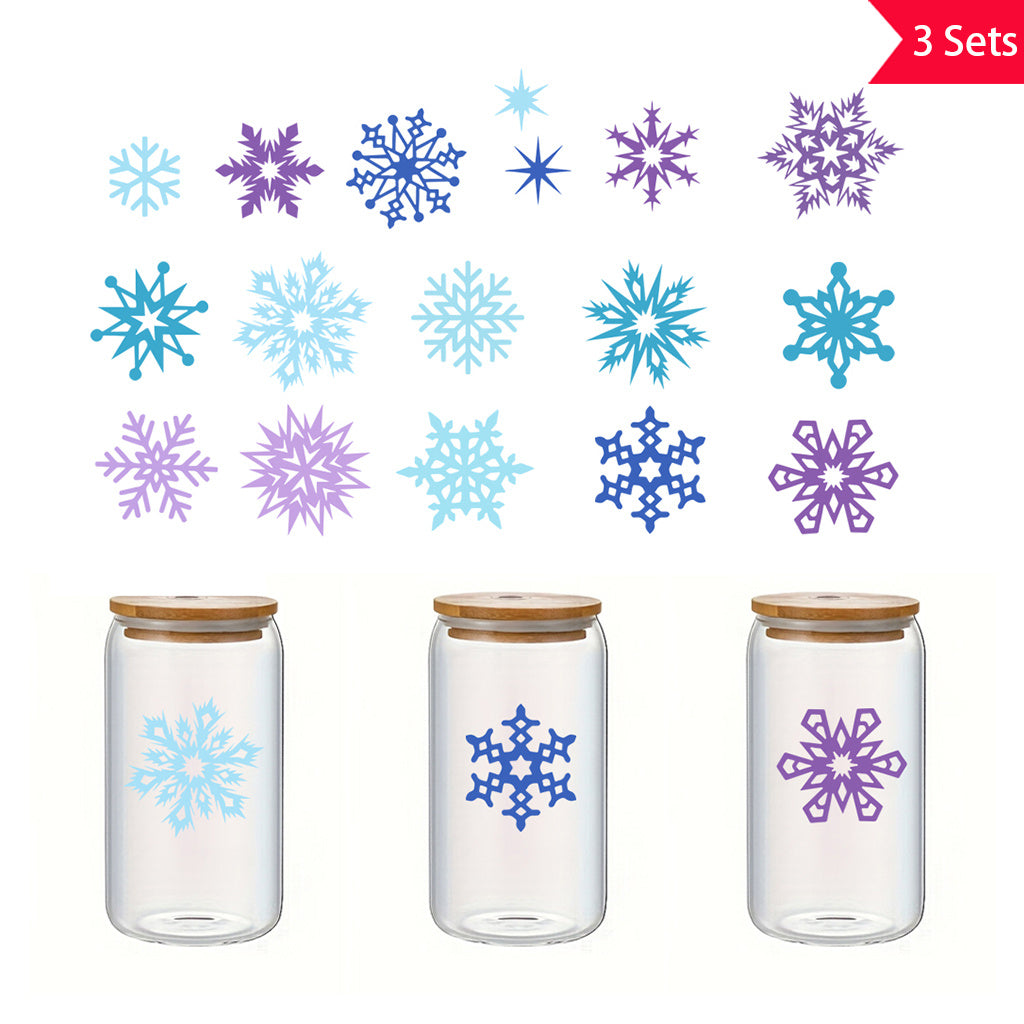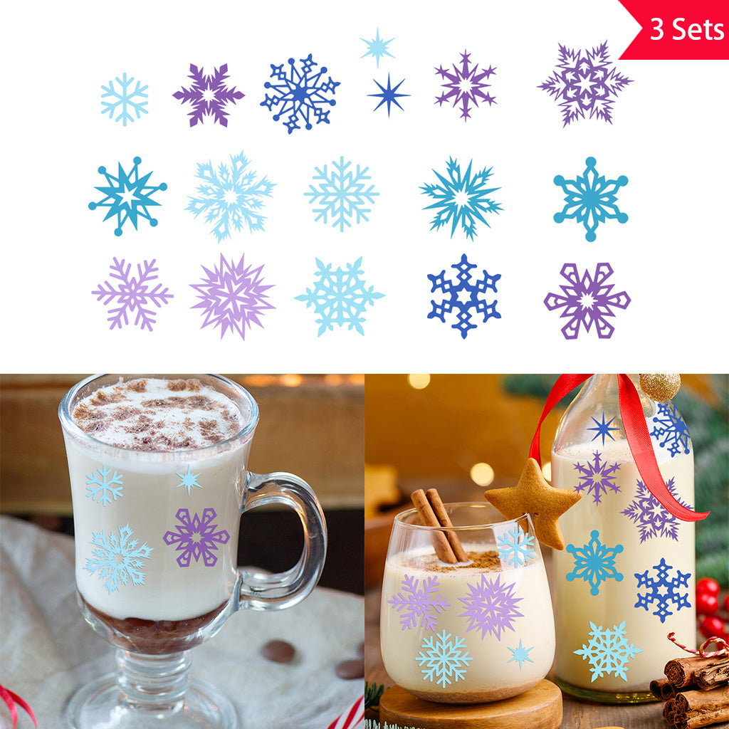 3套 圣诞节 冬日雪花转印水晶标贴纸 UV DTF 转印贴纸 自粘防水时尚贴纸 咖啡杯 马克杯等 圣诞节趣味活力贴纸
