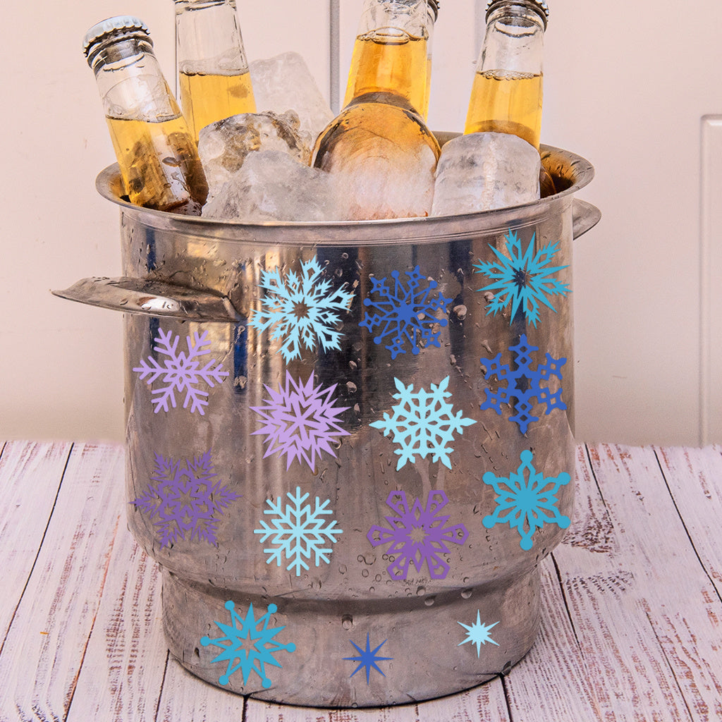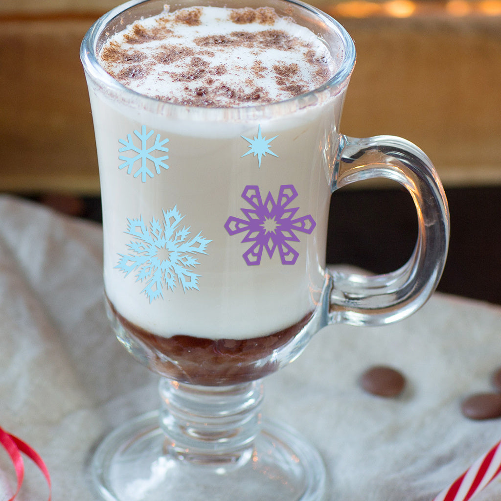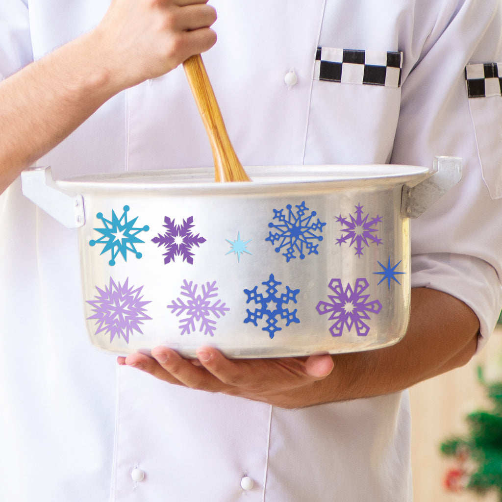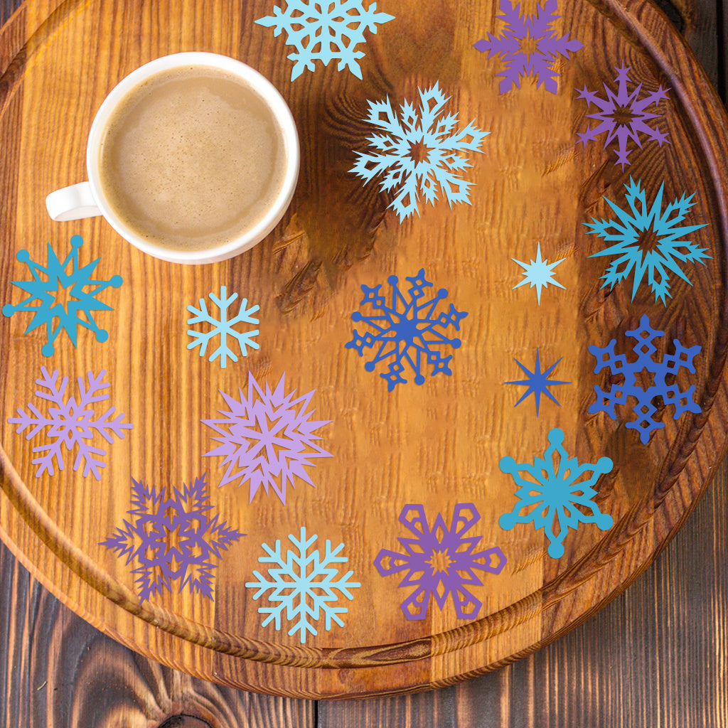 3套 圣诞节 冬日雪花转印水晶标贴纸 UV DTF 转印贴纸 自粘防水时尚贴纸 咖啡杯 马克杯等 圣诞节趣味活力贴纸