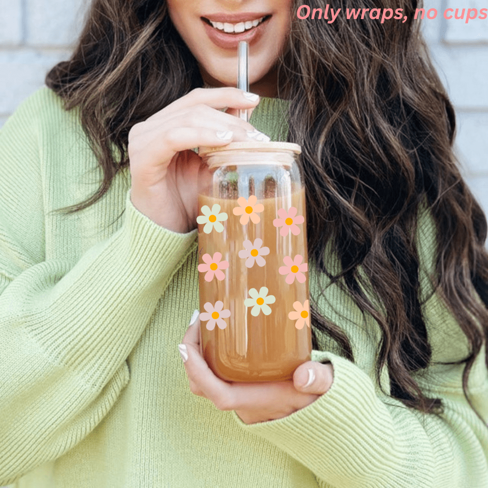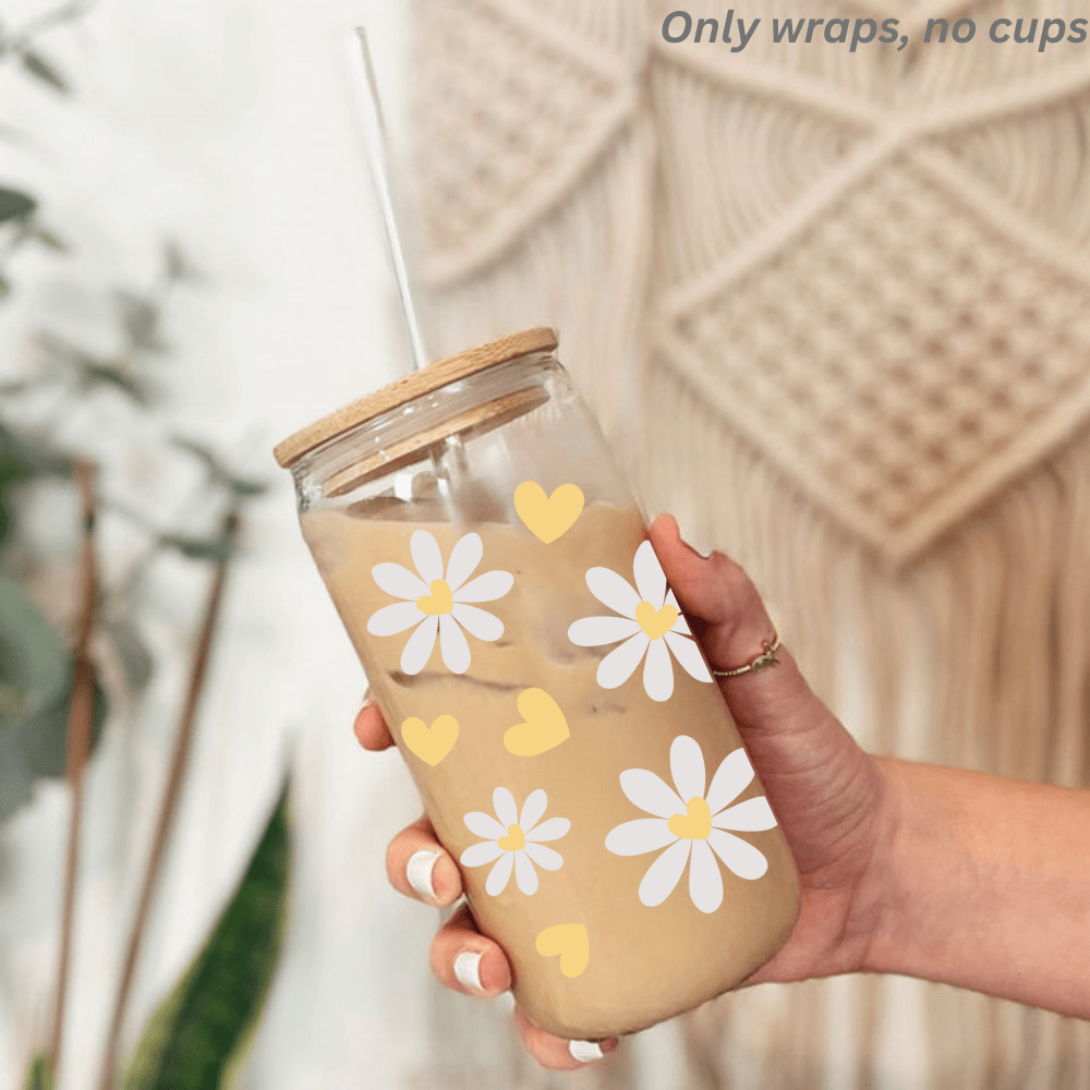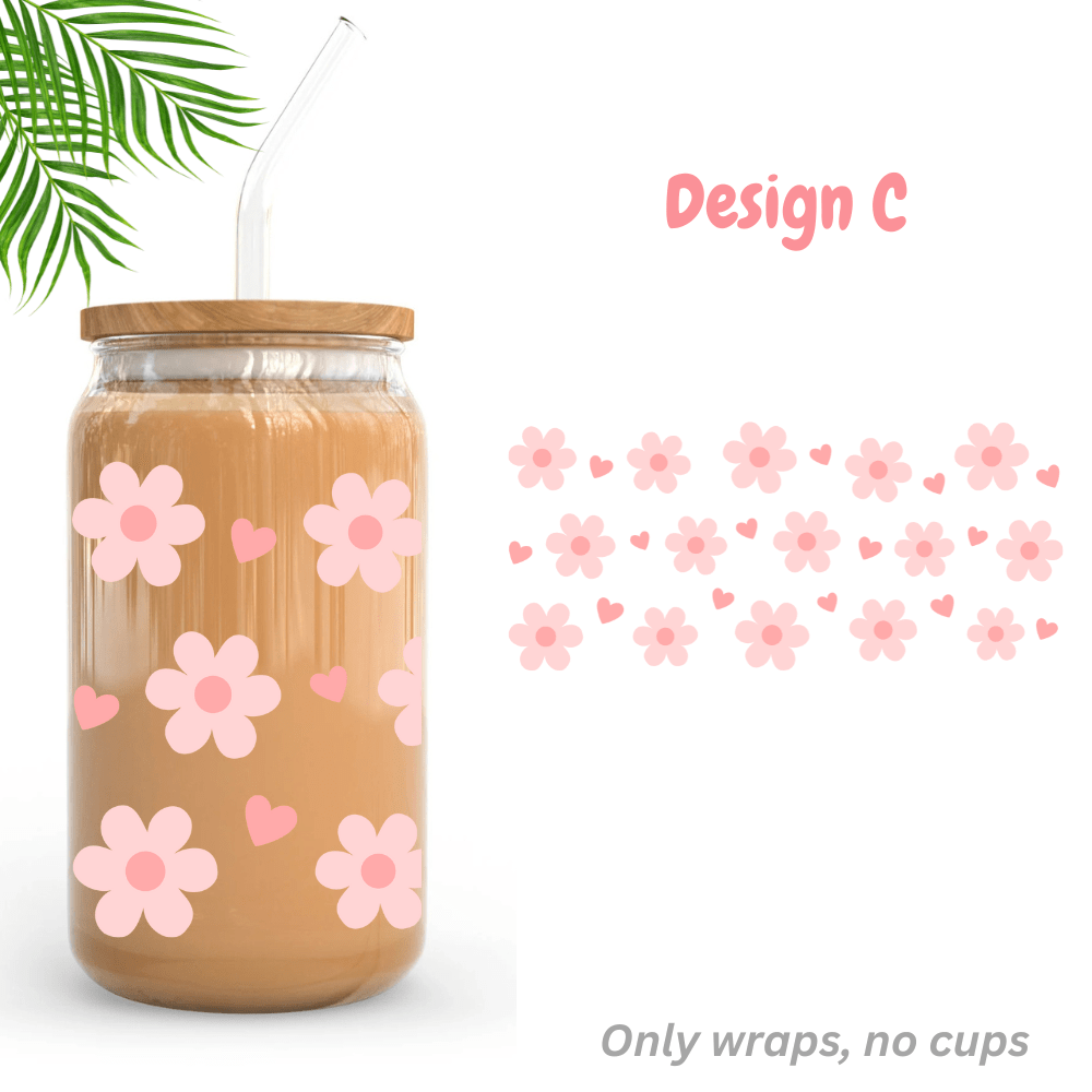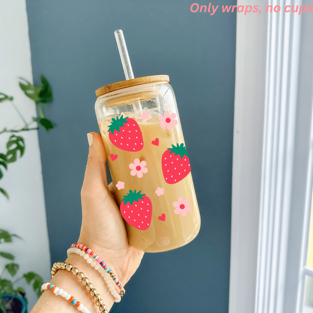 4 个装/1 套 菲莎草莓花心的 UV 聚酯薄膜杯套贴纸,适用于杯子、水瓶、便携式水杯、笔记本电脑、家具、手机壳,具有防水和抗刮擦功能的 UV 聚酯薄膜贴纸,适用于 16 盎司利比雅玻璃杯,适合 DIY 创意装饰,可直接贴附的转移贴纸,适用于 16 盎司利比雅玻璃杯、便携式水杯、笔记本电脑、家具、手机、笔记本电脑、家具、学生用品。