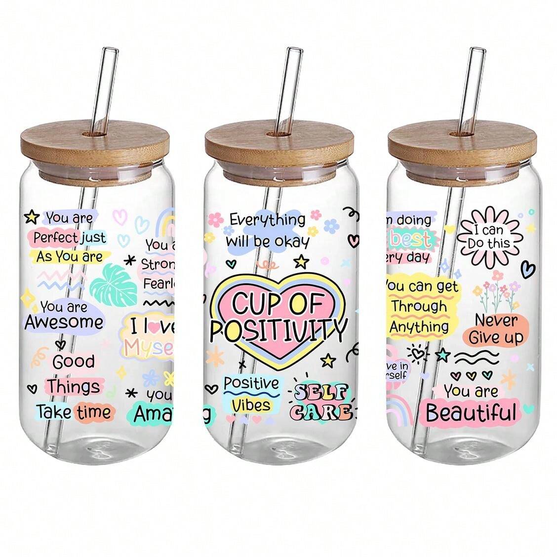 5pcs/Set Mental Health Theme UV DTF Cup Wraps, Waterproof Self-Adhesive Stickers For Mugs, Water Bottles, 16oz Glass Can Wraps, 3D Crystal Label, DIY Crafts