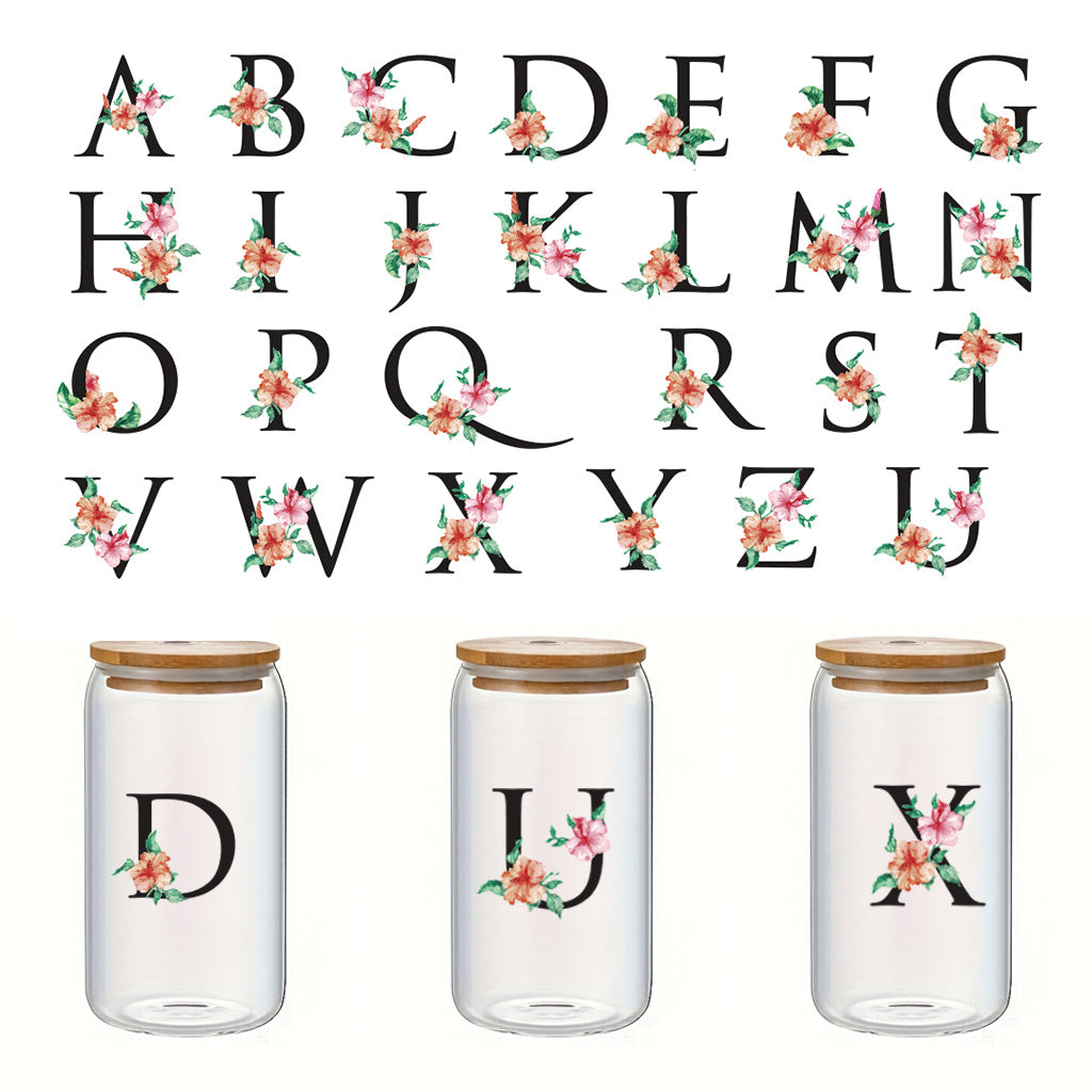 6套 26 个字母花朵 A-Z 设计 UV DTF 转印贴纸办公室和家用 16 盎司字母玻璃杯贴纸 DIY 包裹转移贴纸 3D 水晶设计女士妈妈最好的朋友礼物 DIY 工艺品